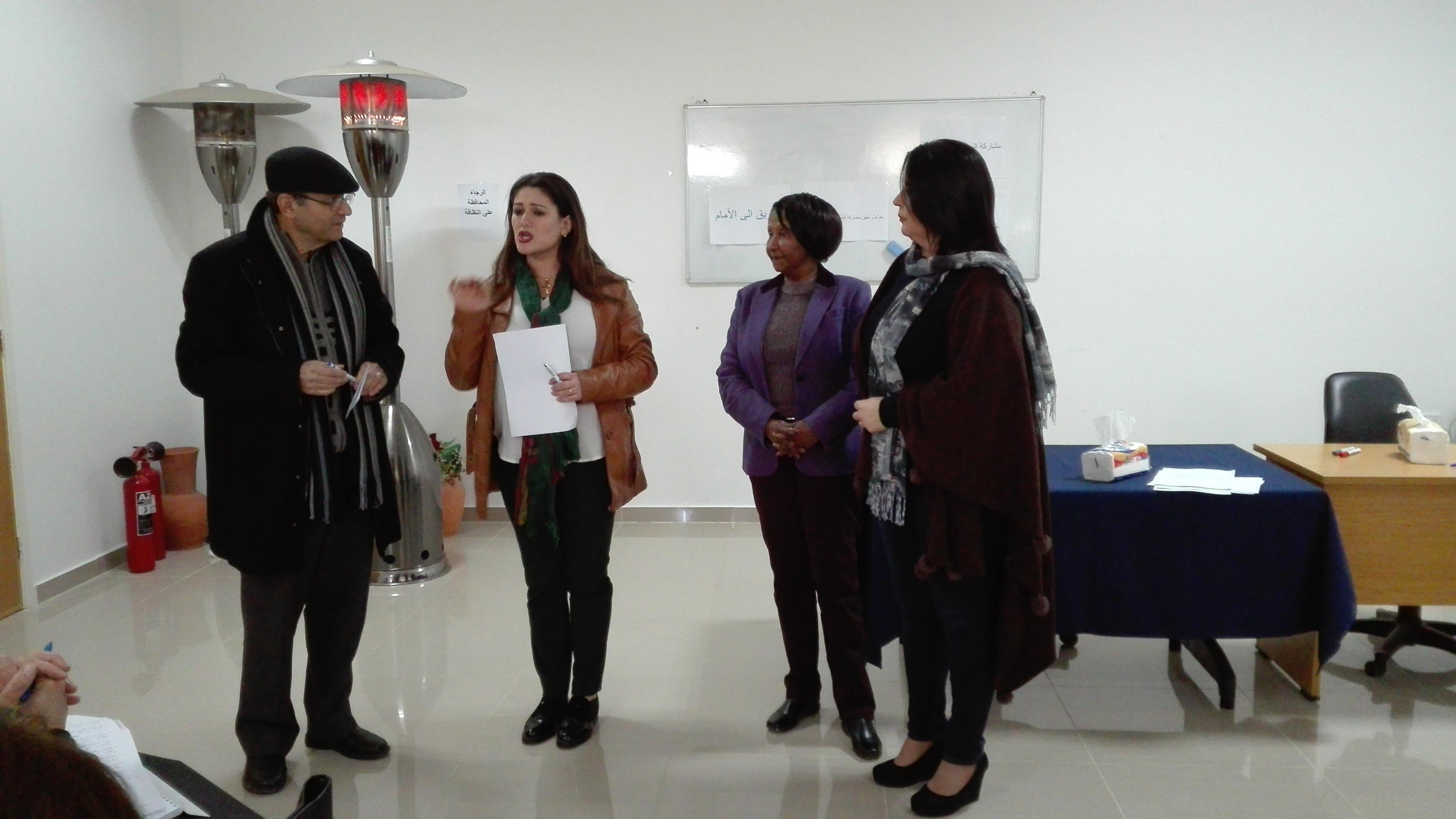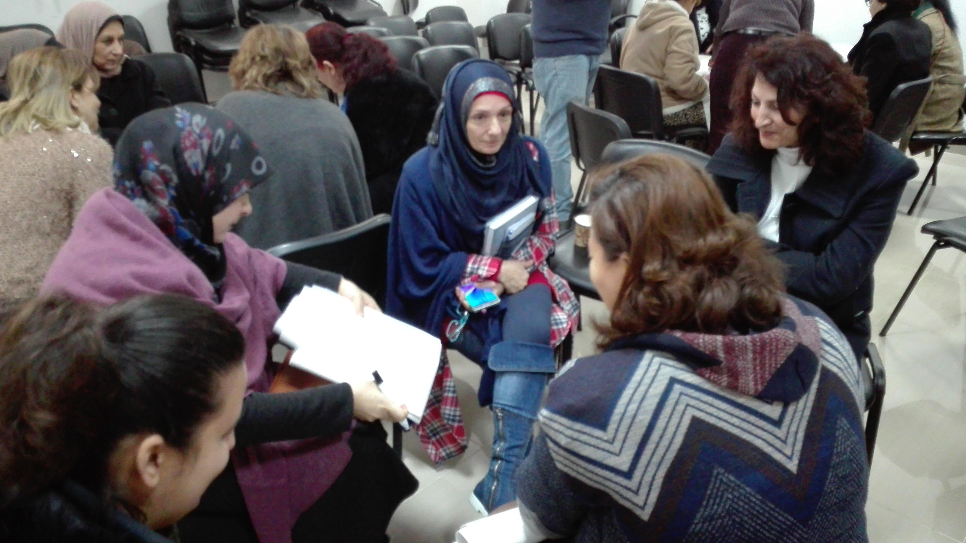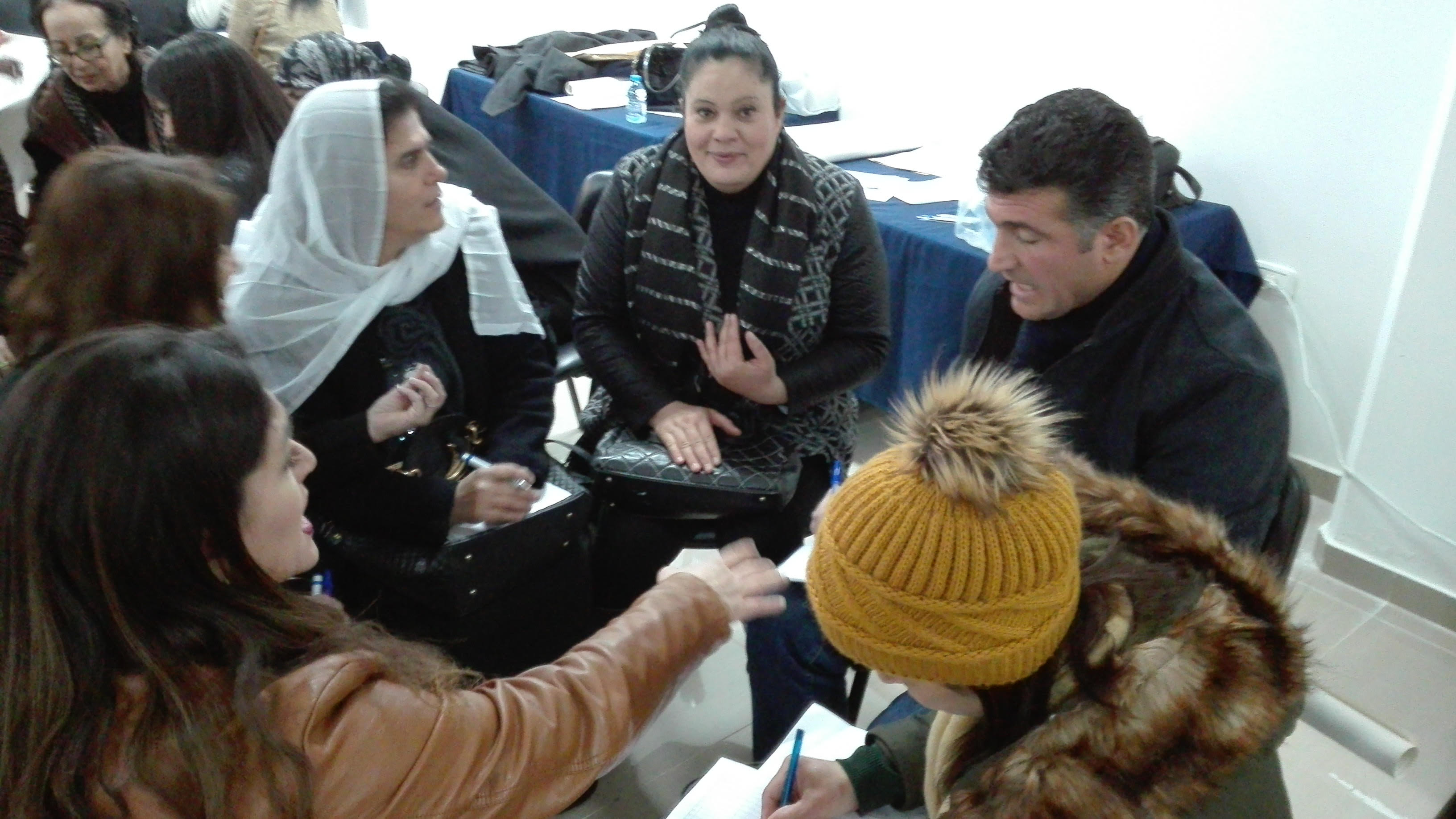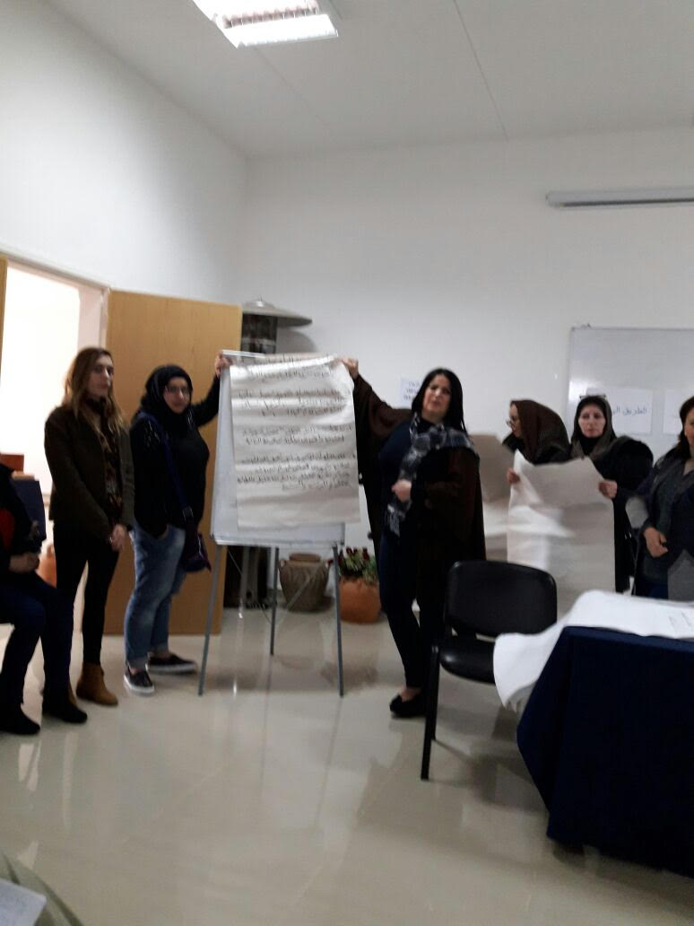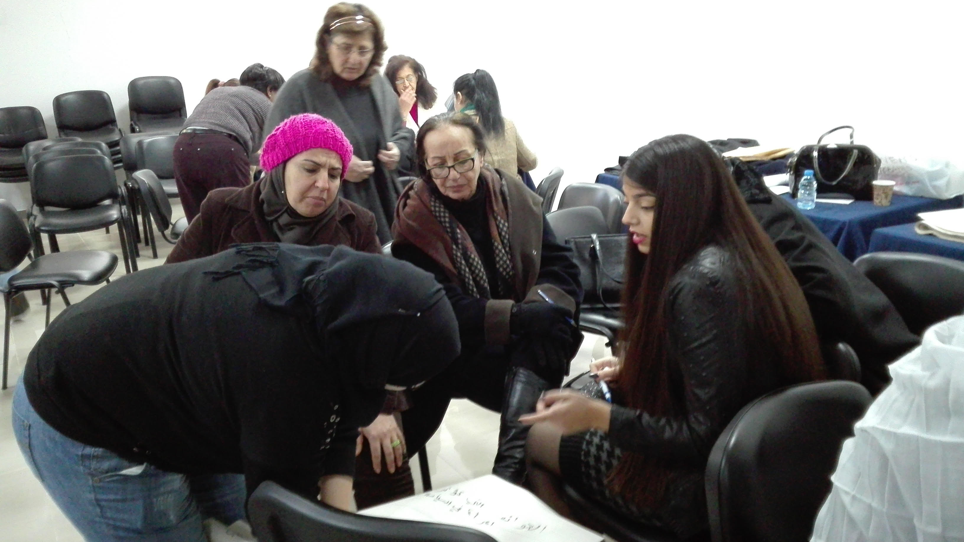 قسم الحضور الى 6 مجموعات بعد توزيع استمارات على المشاركات عن رأي النساء حول مشاركة المراة في السياسة واهم العوامل المساعدة وعن الموانع وما هي السبل لوصول المراة ال مراكز القرار تم مناقشة الاستمارة ورفعت كل مجموعة توصياتها على ان يصل الصوت الى الامم المتحدة والحث على تنفيذ الاتفاقيات المتعلقة بحقوق النساء ووجود آلية تلزم الدول بتنفيذ تعهداتها.