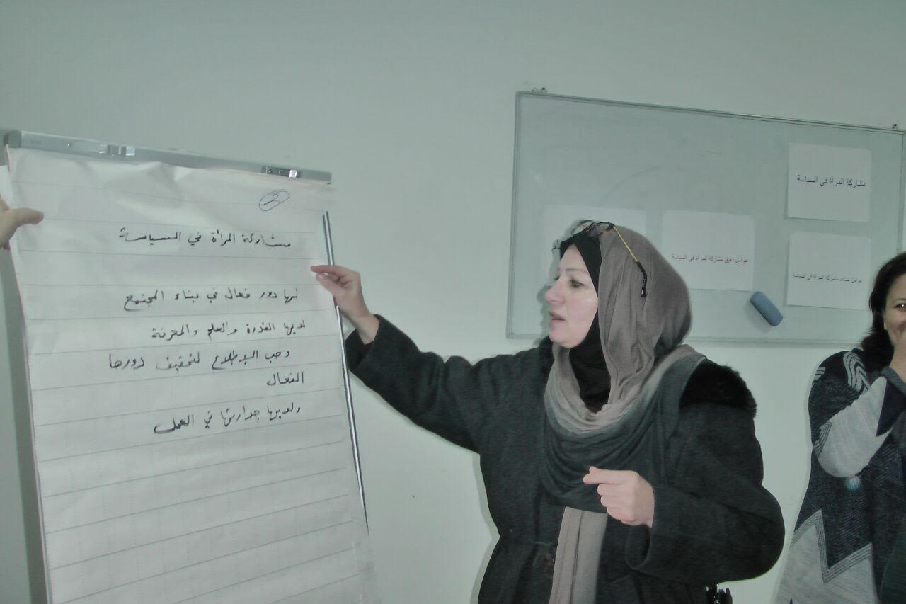 على المراة اثبات ذاتها والايمان بقدراتها والتقدم الى الانتخابات والتعرف الى حقوقها القانونية