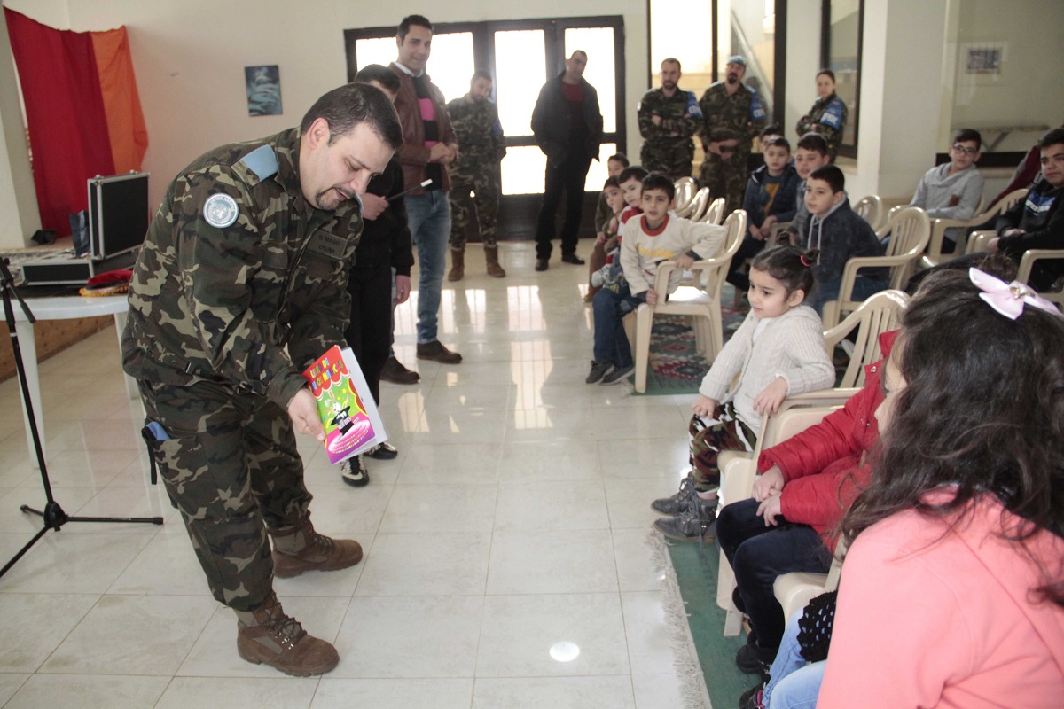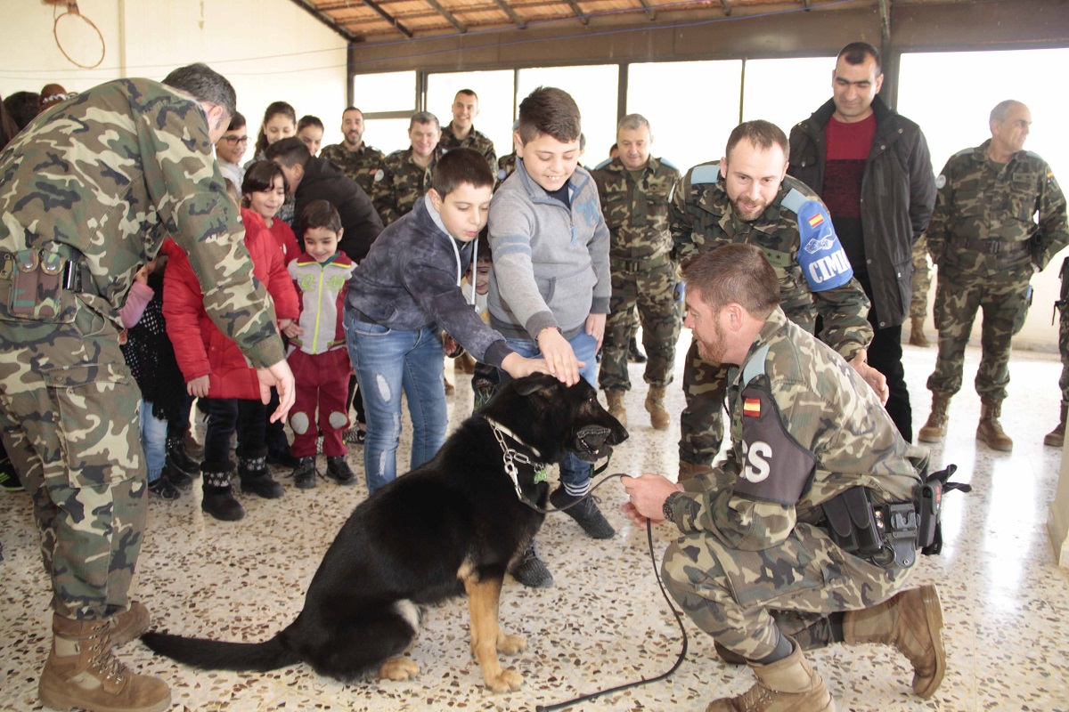2. Spanish peacekeepers were welcomed by the Director of the school Mr. Amin Ghattas. The day started with a magic show displayed by a Spanish soldier. The children enjoyed the magician show followed by the most funny and interesting display of thrill by the military dogs. At the end of the ceremony the children were gifted with gifts containing toys, sports items and school material sponsored by the Spanish University of Córdoba and the Veterans Paratroopers Association of Córdoba. Children felt very happy with the gesture of UNIFIL personals. Director thanked UNIFIL for their continuous support and also applauded the sincere efforts for organizing the visit so cherished.