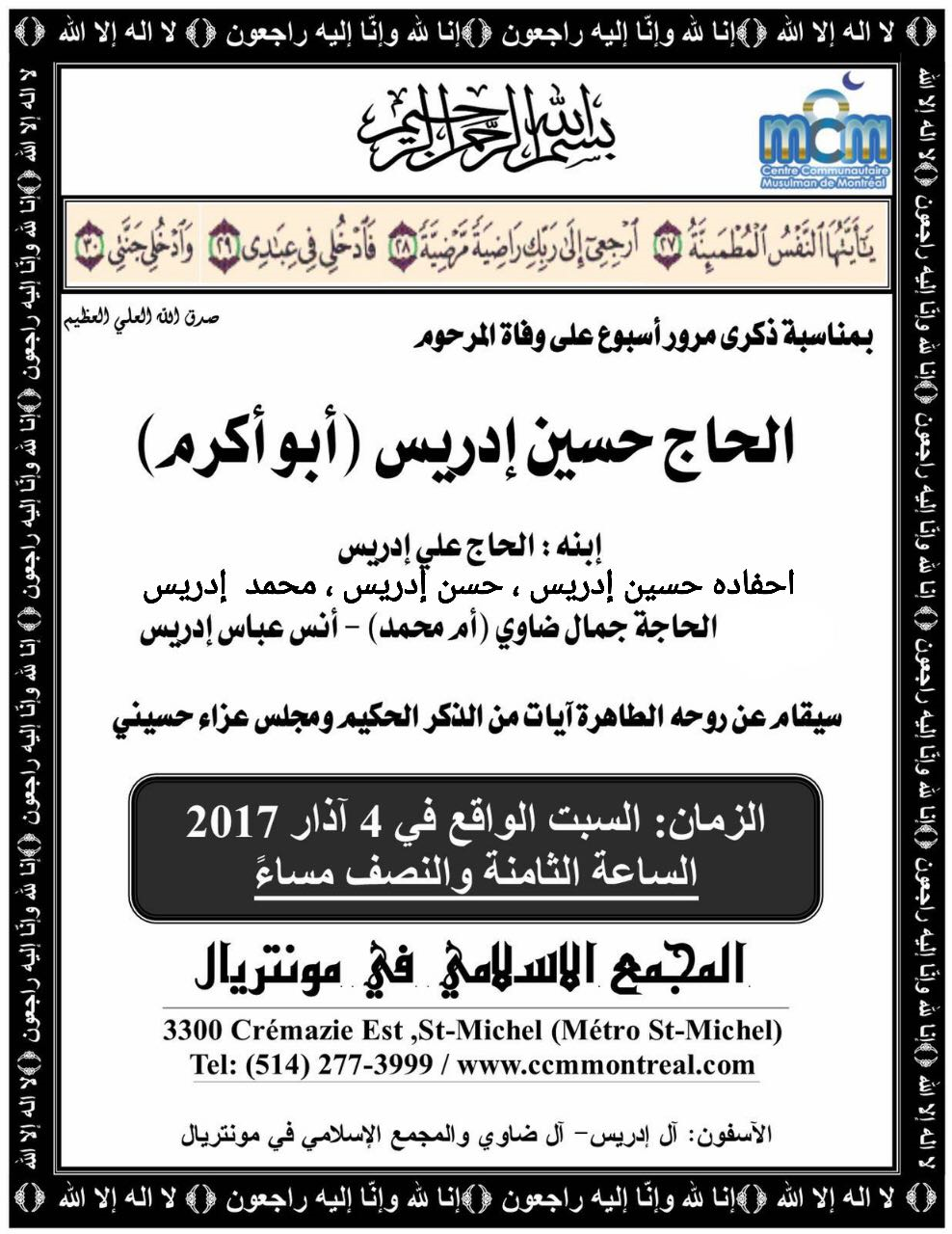 لمناسبة ذكرى مرور أسبوع على وفاة المرحوم
