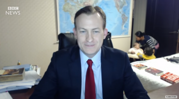 بالفيديو - طفلان يقتحمان هواء "بي بي سي"... كيف تصرف والدهما المحلل؟