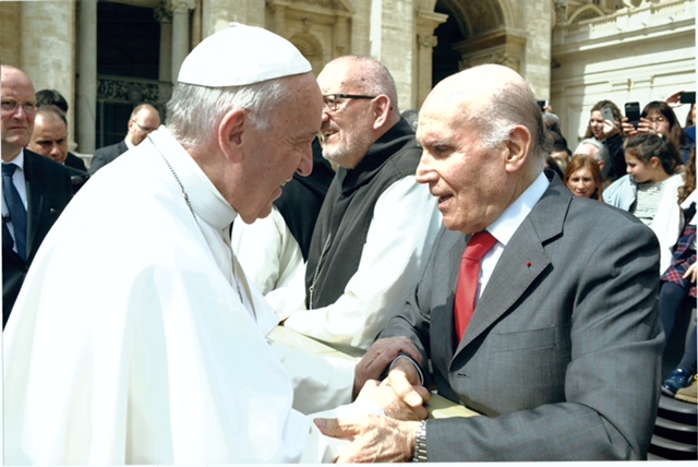 Votre Sainteté, je tenais à vous affirmer notre plus sincère admiration et notre plus grand respect pour votre engagement auprès des plus démunis. Votre action s’inscrit dans la construction d’un message de solidarité, le projet des artisans de la paix, auxquels nous nous identifions. Nous le traduisons chaque jour par notre action ainsi que la force de nos convictions. Depuis 2012, nous avons mis en place près de 1,6 millions de services aux populations affectées par la crise syrienne.