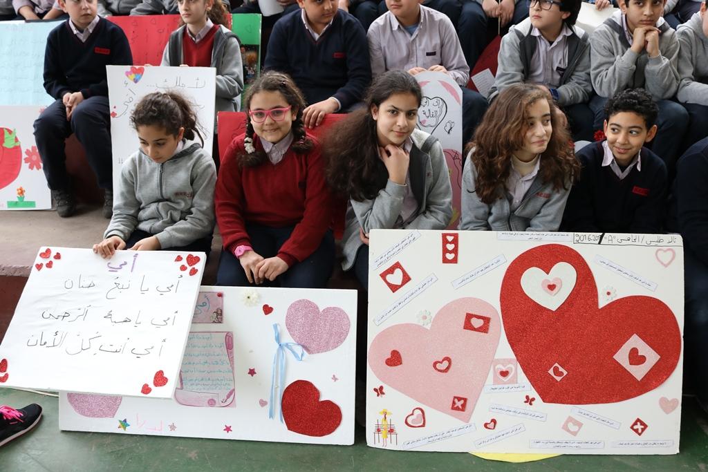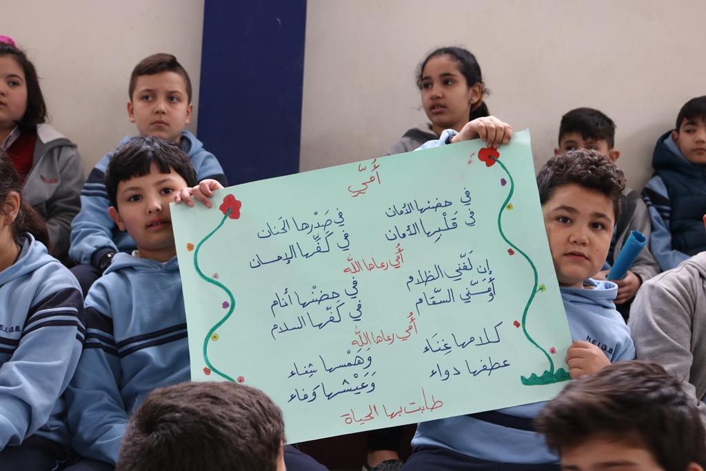 وقدّم طلاب القسمين أغان من وحي المناسبة وعدداً من القصائد الشعرية باللغتين الانكليزية والعربية، حاملين صور أمهاتهم ولوحات تدل على مدى محبتهم لـ "الأم".