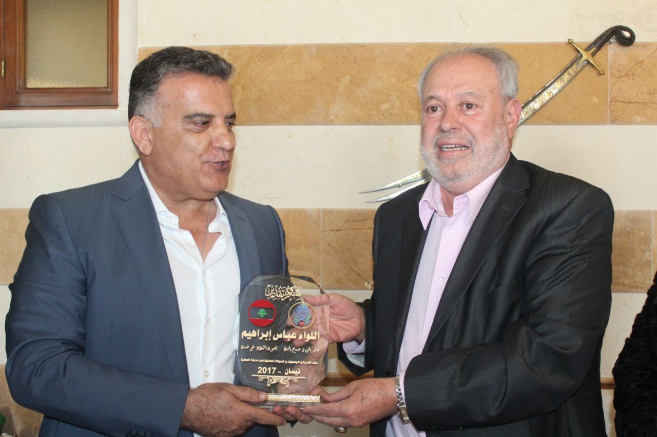 وقدم محمد فخر الدين باسم «لقاء الأندية والجمعيات» درعاً تقديرية تحمل التهنئة والمباركة. وشكر اللواء إبراهيم للوفد التفاتته وزيارته.