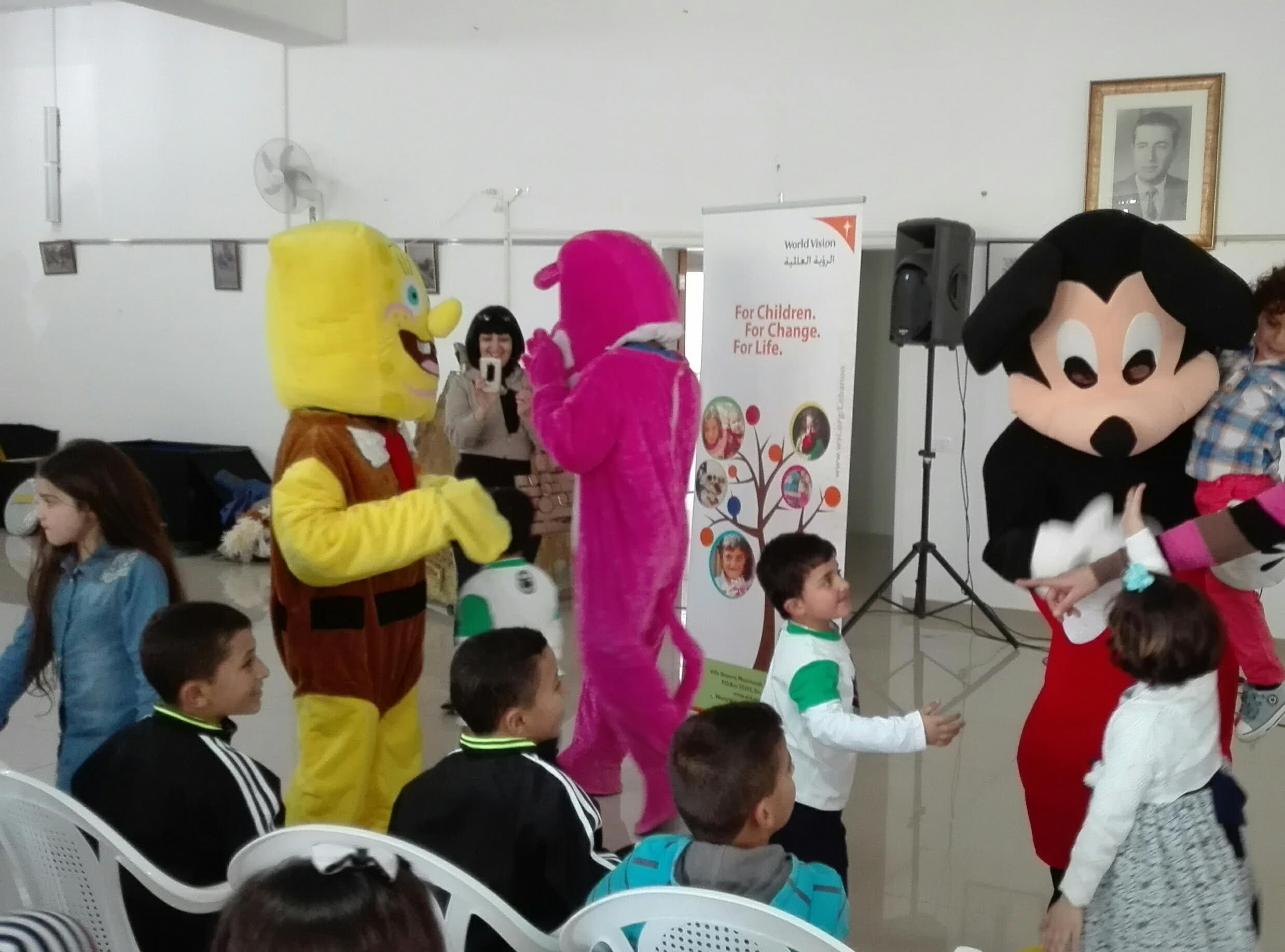 الاطفال هني العيد هني ملائكة السما عالارض شو ما عملنالهم مقصرين من حق طفولتهم علينا نحميهم نعلمهم ونرفه عنهم والاهم نوجهه ونعرفهم على حقوقهم وهيدا كان عنوان المسرحية شتي يا دنيا صيصان الاطفال غنوا وفرحوا وزقفوا وانبسطوا اولا بفرقة الجمعية اللي عزفتلهم النشيد الوطني ومقطوعات موسيقية وتفاعلوا مع المسرحية وانبسطوا كتير وبالآخر كل ولد حضر معنا المسرحية قدمنا له كيس صغير فيه كيك وعصير، همنا ولادنا يربوا بصحة جسدية ونفسية والمسرحيات للاطفال من ارقى الاساليب اللي بتوصل الفكرة للطفل بدون تلقين هوي بيستنتجها.