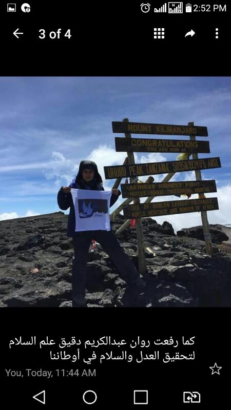 بتاريخ 14 نيسان 2017 تمكنت جويس عزام وروان عبد الكريم دقيق،.. ابنة الستة عشر ربيعا وليان أحمد دقيق من الوصول الى أعلى قمة في افريقيا.. وروان التي رفعت علم السلام على قمة كليمنجارو تتحضر الآن الى تسلق الجبل الثالث في اندونيسيا وذلك في تموز حيث ستسغرق الرحلة 22يوما .