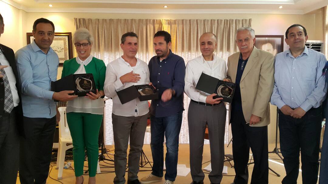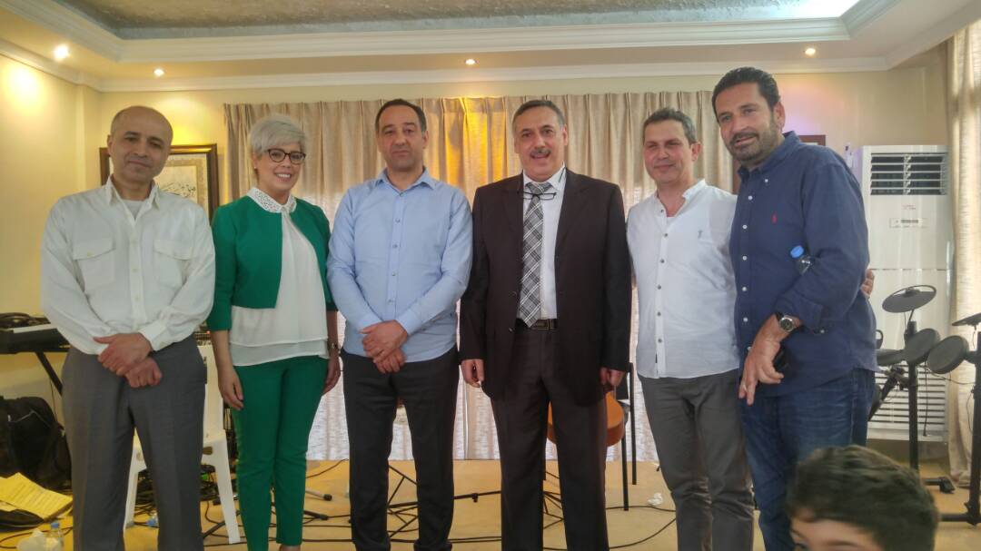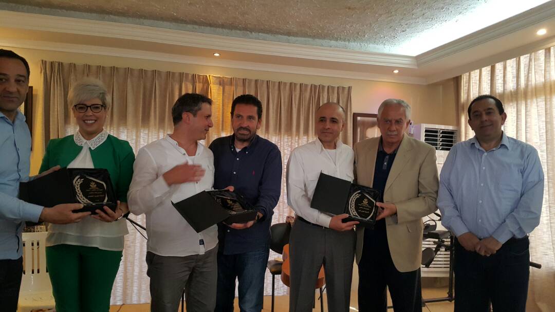 في الختام قدم رئيس النادي الدكتور علي سلوم وامين الشؤون الفنية الاستاذ عبد الجليل شكر وا عضاء الهيئة الادارية دروعا تكريمية للاساتذة الموسيقيين تقديرا لعطائهم المميز