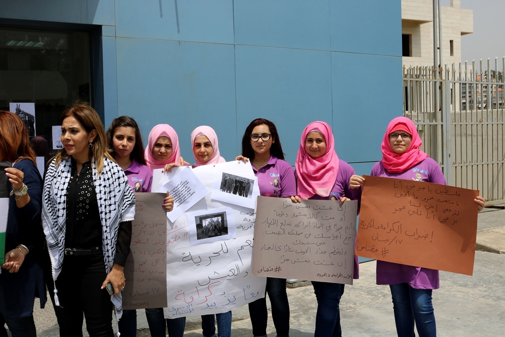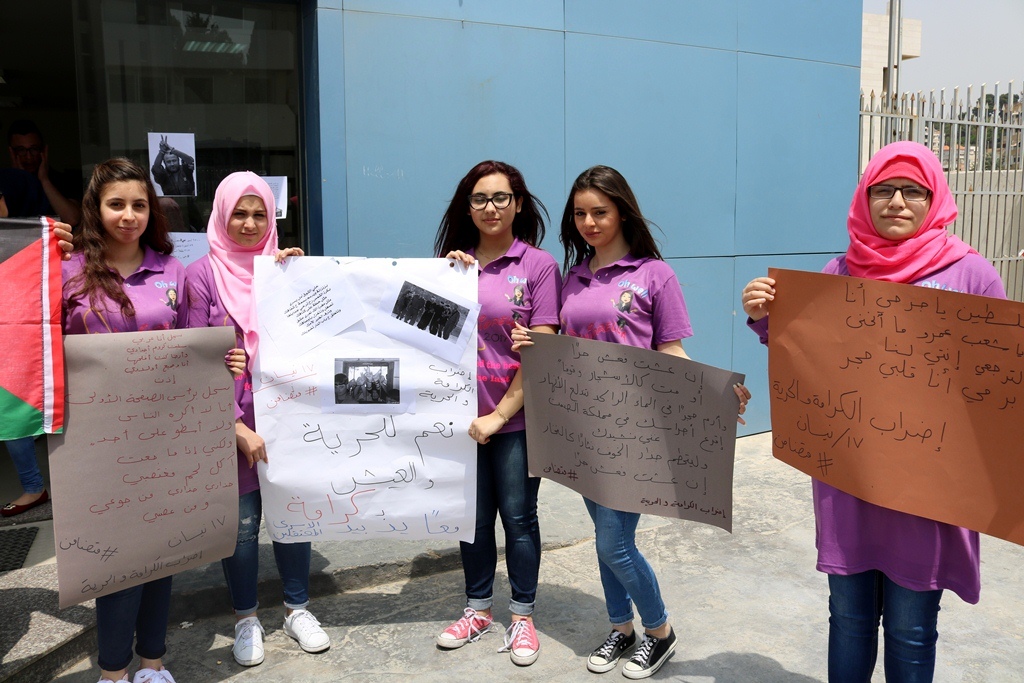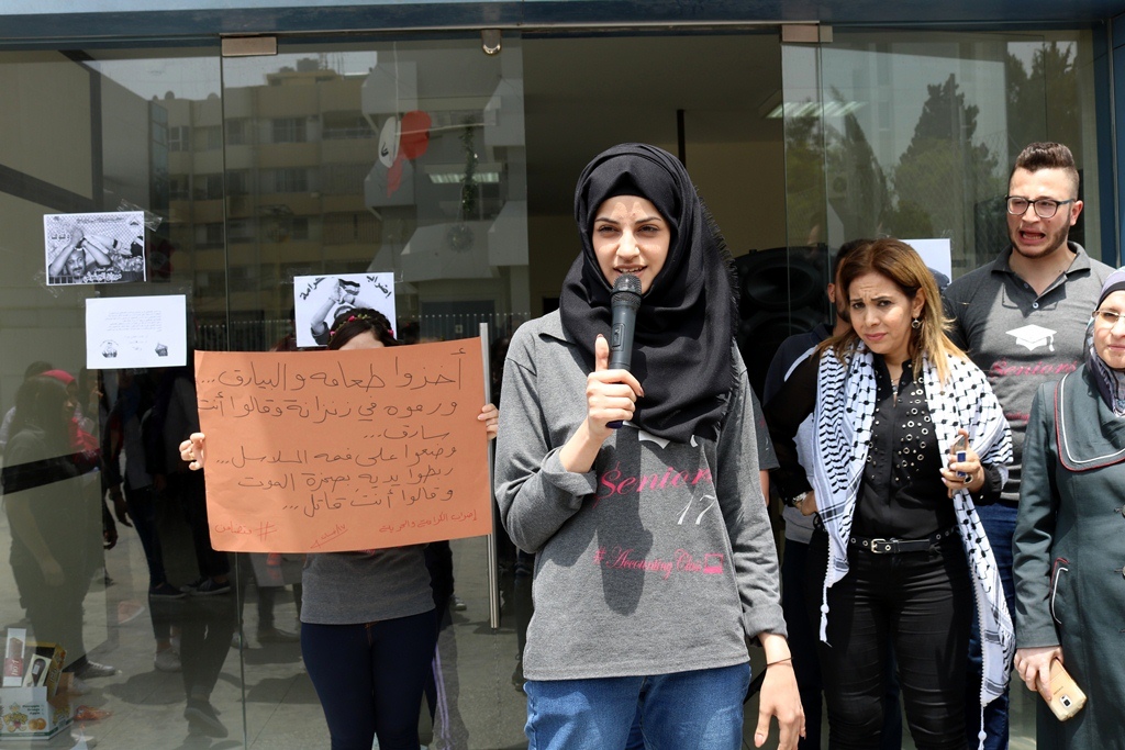 وألقت الطالبة رنا حليمة كلمة وجهت فيها التحية إلى الأسرى الفلسطينيين الذين يخوضون معركة الحرية والكرامة بأمعائهم الخاوية، مؤكدة أن طلاب المعهد والأسرة التعليمية يقفون إلى جانب الأسرى ولو بشكل رمزي تعبيراً علن تضامنهم معهم.