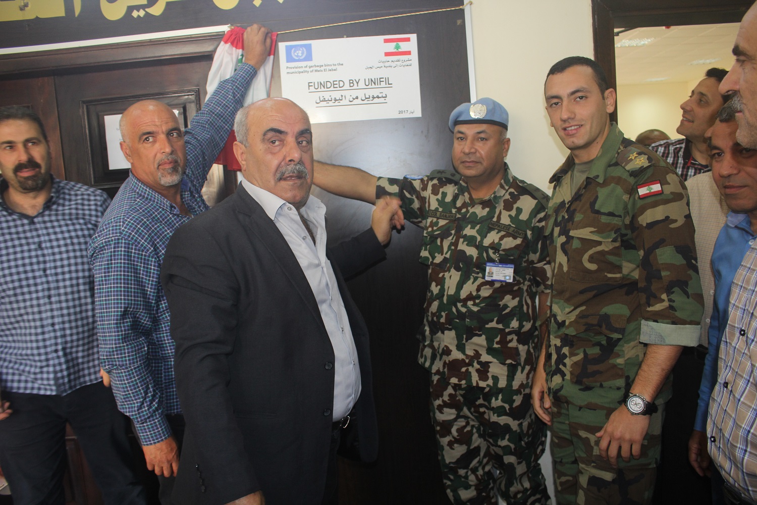 افتتح قائد الكتيبة النيبالية في القطاع الشرقي لليونيفيل المقدّم سانجاي مشروع تقديم مستوعبات للنفايات في بلدة ميس الجبل بحضور رئيس البلدية ووحدة التعاون المدني العسكري في القطاع الشرقي وأعضاء البلدية وممثلين عن الجيش اللبناني وفعاليات محلية.