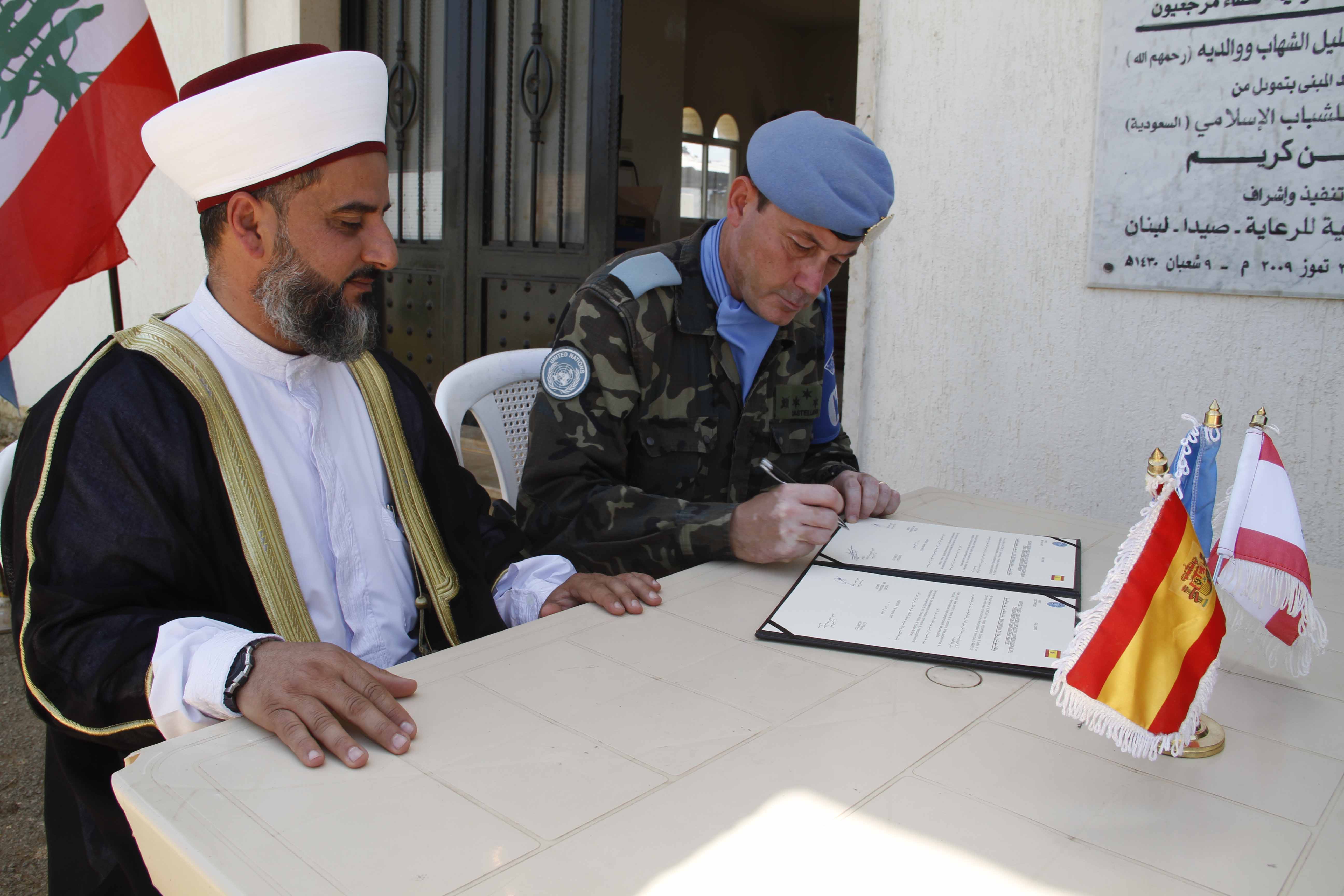 تمّ توقيع وثيقة تسليم المشروع من قبل كل من ممثل الكتيبة والشيخ الذي ثمّن التفاهم والتعاون المشترك بين عناصر اليونيفيل والسكان المحليين. بلغت كلفة المشروع 9000 دولار وهو عبارة عن تأهيل حائط وسياج للجامع. وقد موّلت إسبانيا هذا المشروع للمساهمة في إنماء هذه المنطقة ودعم السكان وفقاً للقرار 1701.
