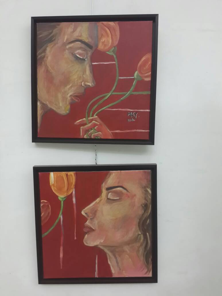 وبحسب مي فإن "كل لوحة تناولت الإنقاسم أحيانا بينها وبين ذاتها .. ما بين تحقيق مشاعرها ومراعاة البيئة والمجتمع من جهة ثانية".