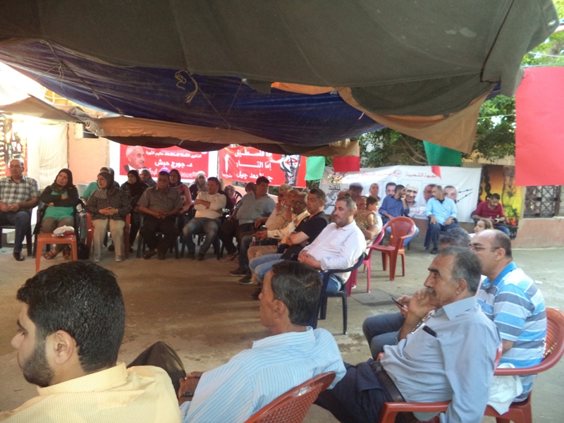استكمالا لنشاطات خيمة التضامن مع الأسرى و المعتقلين المضربين عن الطعام لليوم السادس و العشرين، أقامت الجبهة الشعبية لتحرير فلسطين في منطقة صيدا أمسية شعرية تحت عنوان " مي و ملح " في خيمة التضامن مع أسرى معركة الأمعاء الخاوية أمام مكتب الجبهة الشعبية في مخيم عين الحلوة.