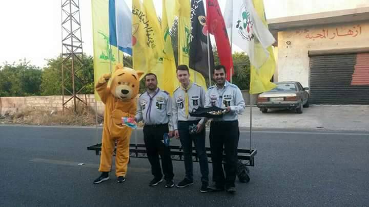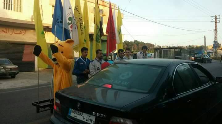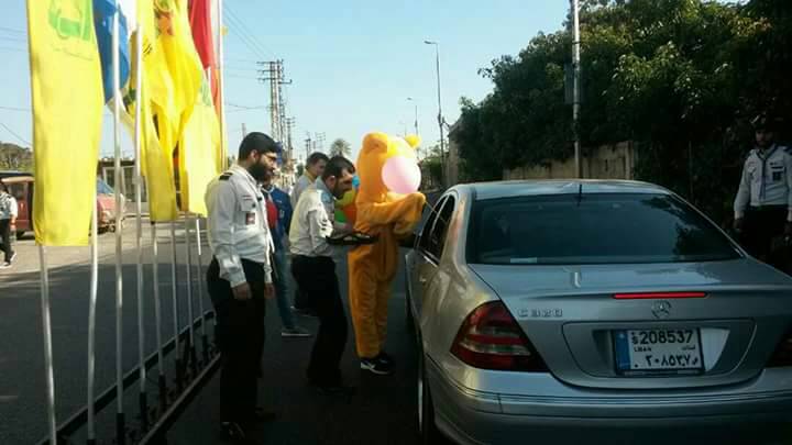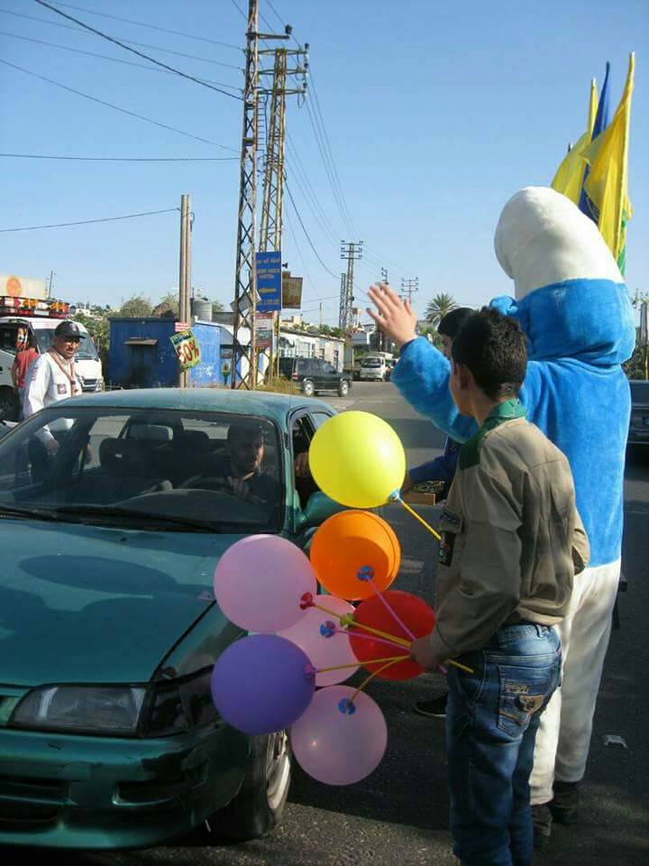 حيث استقبل الوافدين الى منطقة الجنوب بالأناشيد والأهازيج وببسمة ارتسمت على وجوه القادة والعناصر الذين وزعوا البالونات والهدايا والحلوى على السيارات