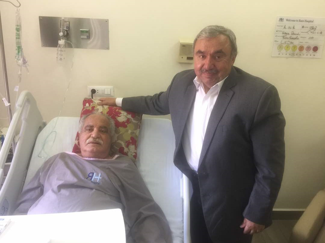 قمنا عصر يوم الاثنين بزيارة سعادته، والحمدلله بدأ بالتعافي، حيث تم اليوم اجراء اول اختبار للنزول من السرير والسير بواسطة (Walker)، فتكللت المحاولة بالنجاح، وهذا وسوف يغادر سعادته المستشفى في يوم الأربعاء القادم مباشرة الى منزله في بلدة الخيام ليكون قريباً من أهله ومحبيه.