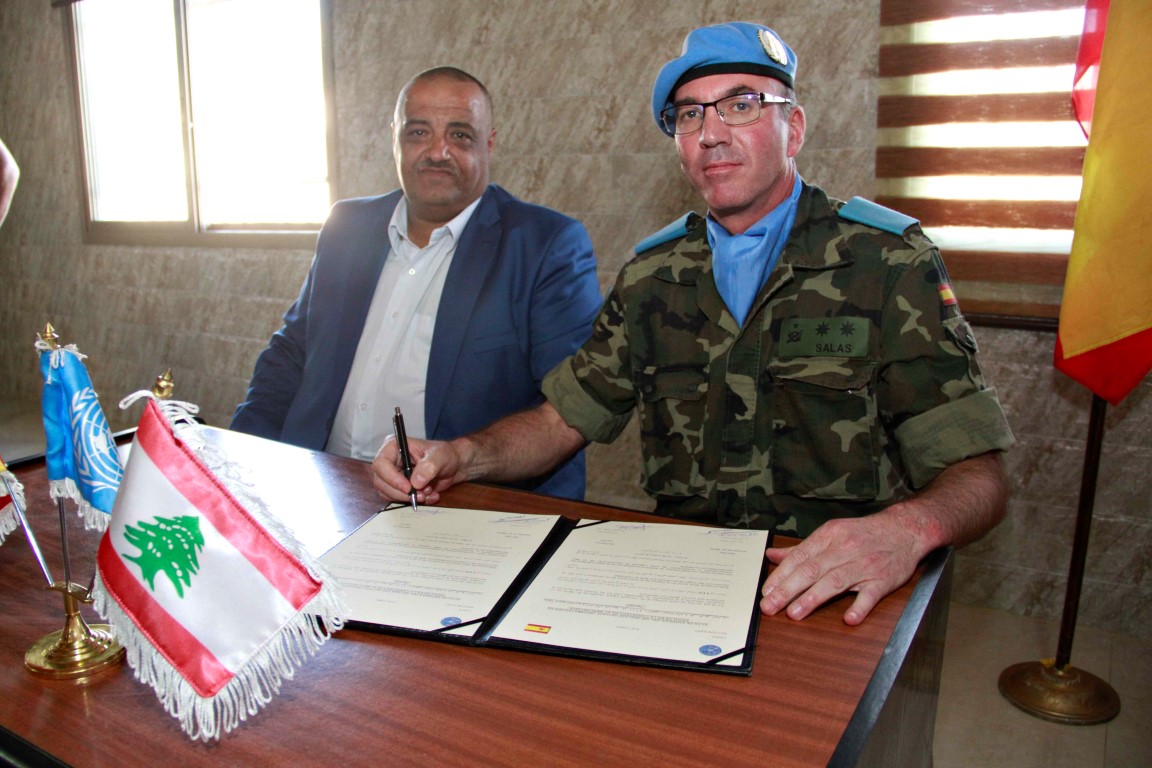 2. Guests were warmly welcomed by the Mayor of the village followed by playing of anthems. The signature document was handed over between the SPANBATT Commander and the Mayor. Both were appreciating the mutual understanding and collaboration among UNIFIL personals and Locals.