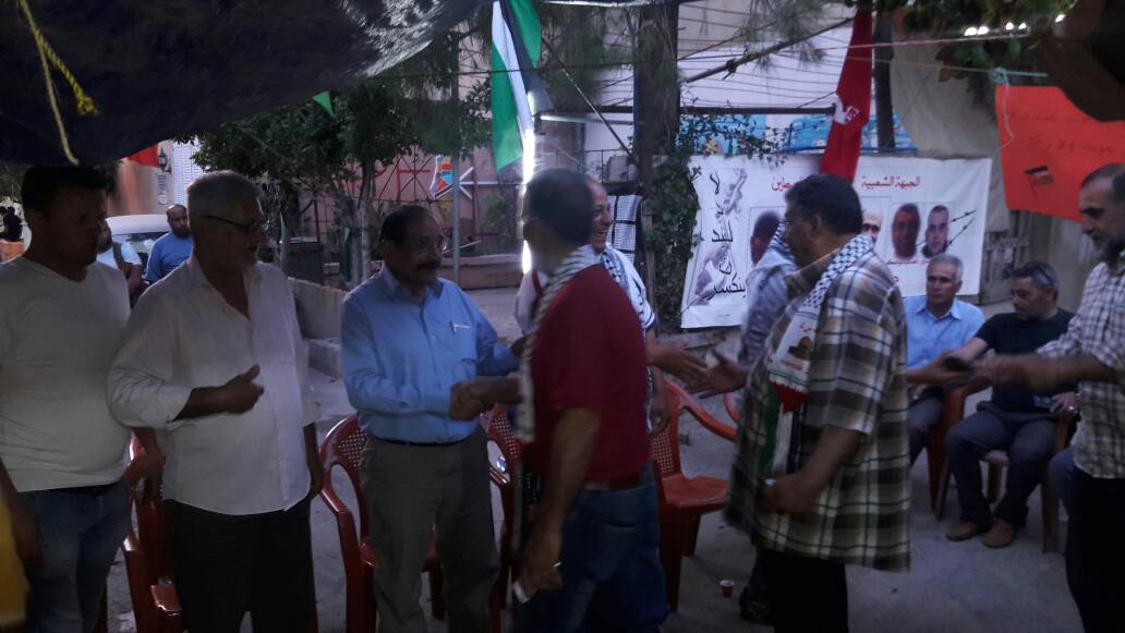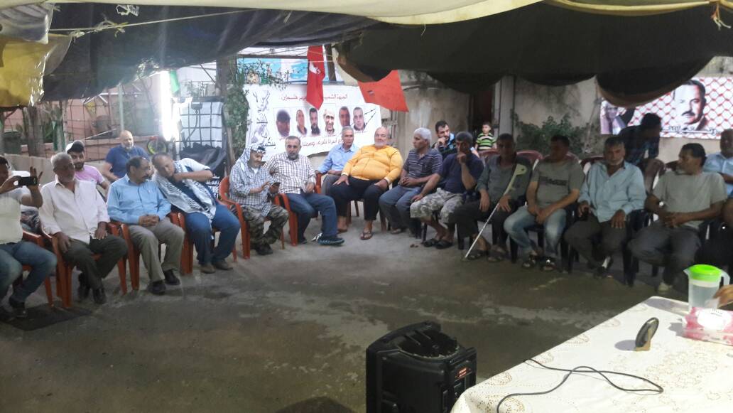 لمناسبة ذكرى النكبة الـ69، وتضامنا مع الأسرى المضربين عن الطعام في السجون الصهيونية، أقامت اللجان العمالية الشعبية الفلسطينية يوم الإثنين 15/5/2017 لقاء حواريا مع الأسير المحرر أنور ياسين في خيمة التضامن مع الأسرى في باحة مقر الشهيد القائد سعيد الصالح، مكتب الجبهة الشعبية في مخيم عين الحلوة.