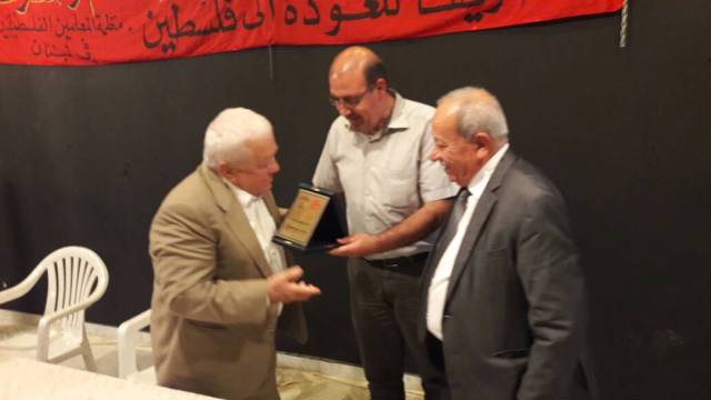 وفي نهاية مداخلته، قدم عدد من الحضور مداخلات، كما قدم أبو احمد سالم مسؤول الجبهة الشعبية في منطقة صيدا و الدكتور عبد رجا سرحان درع الجبهة الشعبية للمناضل الاستاذ غالب بو مصلح .