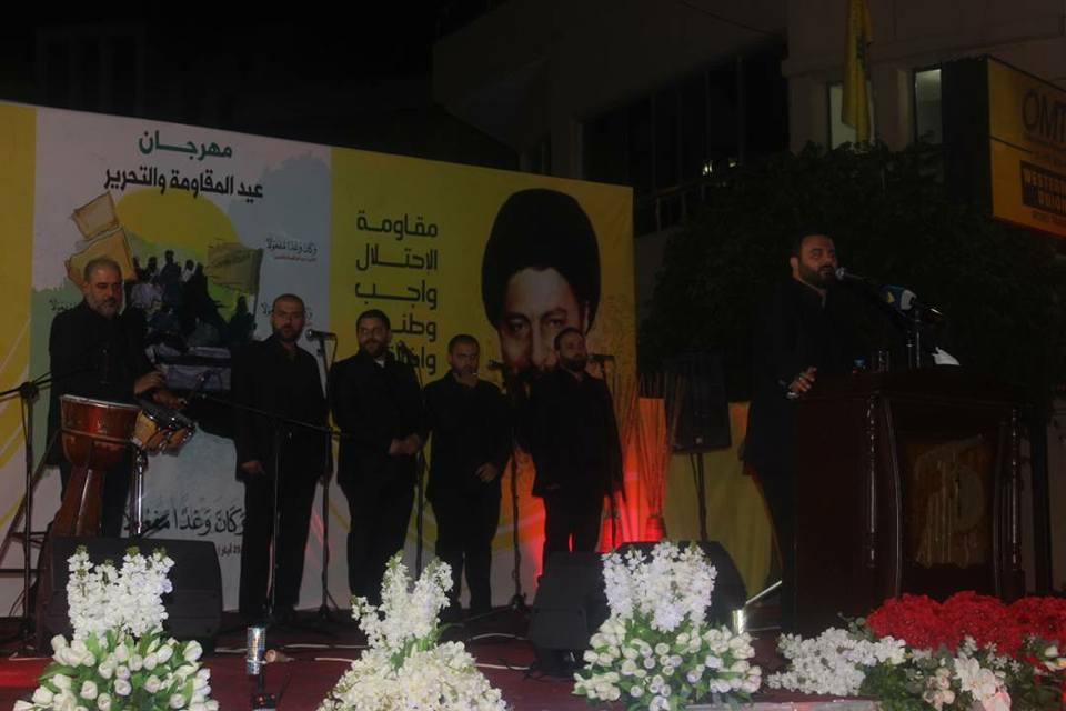 بمناسبة عيد المقاومة والتحرير وبرعاية بلدية الخيام ، أقام حزب الله إحتفالاً جماهيرياً حاشداً في سنتر مدينة الخيام بحضور مسؤول العلاقات الدولية في حزب الله السيد عمار الموسوي، نائب رئيس بلدية الخيام الدكتور علي حمادة، مفتي مرجعيون سماحة العلامة الشيخ عبد الحسين عبدالله، مسؤول قطاع الخيام في حزب الله الحاج علي زريق، وفد من حركة امل برئاسة الحاج خنجر شعيب، رؤساء بلديات من منطقة مرجعيون , اعضاء مجلس بلدي ومخاتير , شخصيات وفعليات حزبية دينية واجتماعية من الخيام والجوار.