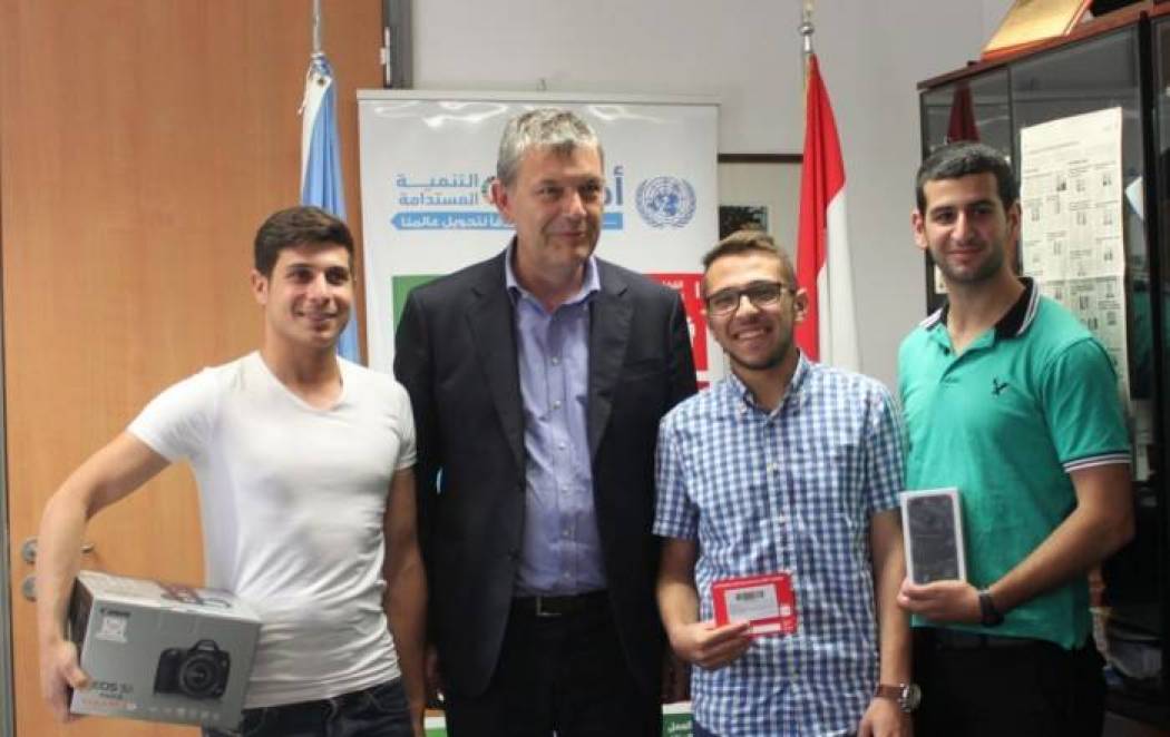 وقد استضاف نائب المنسّق الخاصّ للأمم المتحدة في لبنان المنسّق المقيم لبرنامج الأمم المتحدة الإنمائي في لبنان فيليب لازاريني في مكتبه في بيروت، الشبان الثلاثة الفائزين بهذه المسابقة وسلّمهم الجوائز العينية، وهي عبارة عن آلة تصوير للمرتبة الأولى وهاتف خلويّ للمرتبة الثانية وقسيمة شرائية للمرتبة الثالثة.