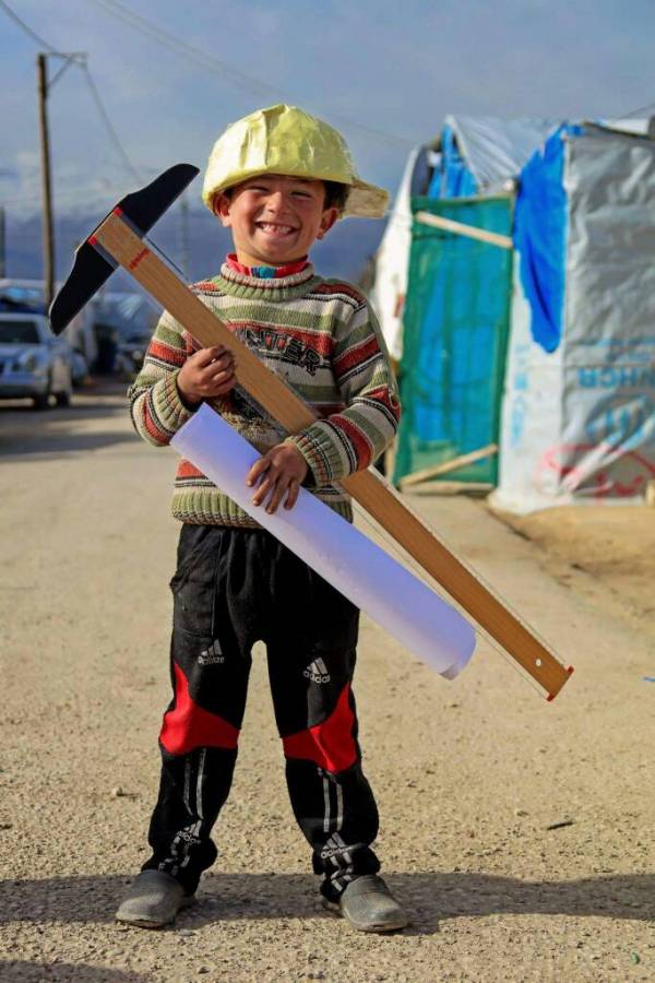 - هشام جلول الذي حل بالمرتبة الأولى لصورة التقطها في أحد مخيمات النازحين، لطفل سوري مبتسم وهو يحمل عدة الهندسة تحت عنوان "الحد من الفقر".