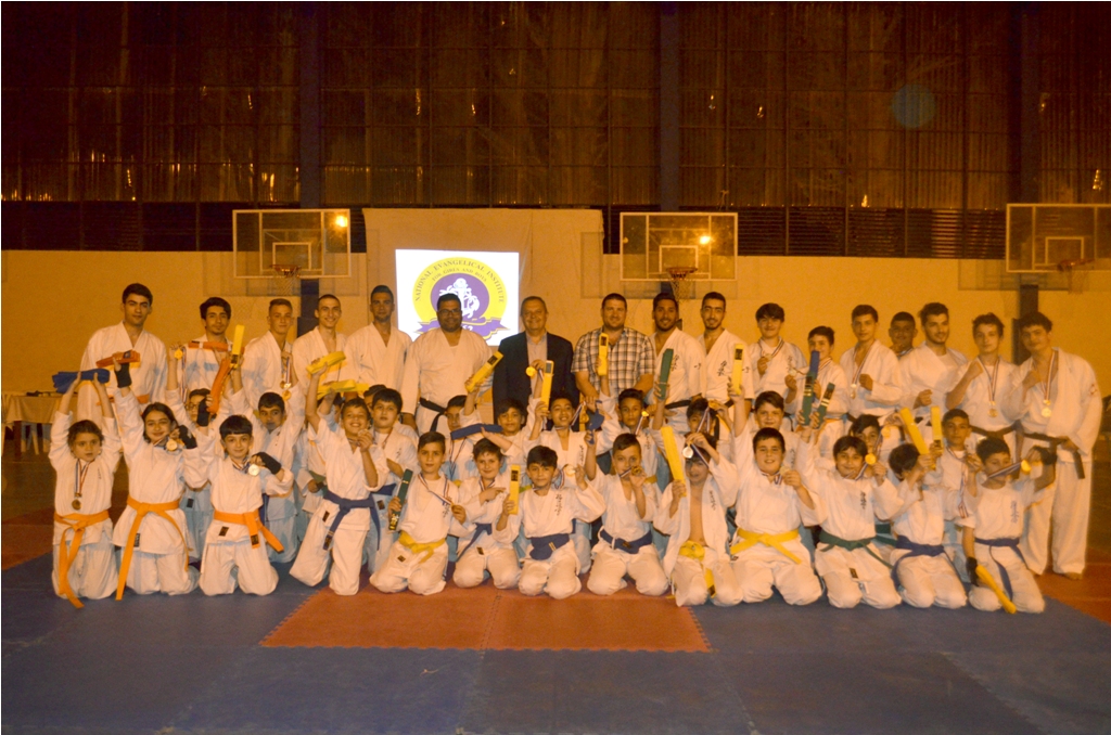 أقام نادي الفنون الإنجيلية الرياضي للكيوكوشنكاي حفل الترقي إلى الأحزمة المتقدمة، وذلك بحضور رئيس المدرسة الدكتور روجير داغر، وحشد من أهالي الطلاب والمشجعين والمهتمين.