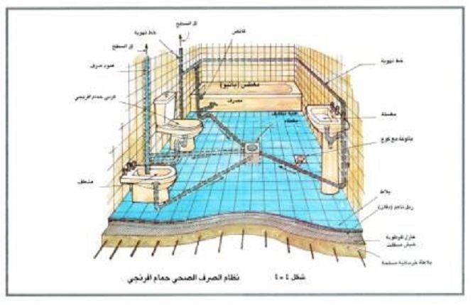 - تفاديا لأي أعمال تكسير في بطون الأساسات أو الأرضية الأساسية (سفلي مثلا) يجب تمديد قساطل تصريف المياه المبتذلة وقساطل المياه العذبة قبل صب الأساسات حسب الخرائط المرفقة (قبل صب البطون يجب التأكد من أن جميع القساطل في حالة سليمة) .