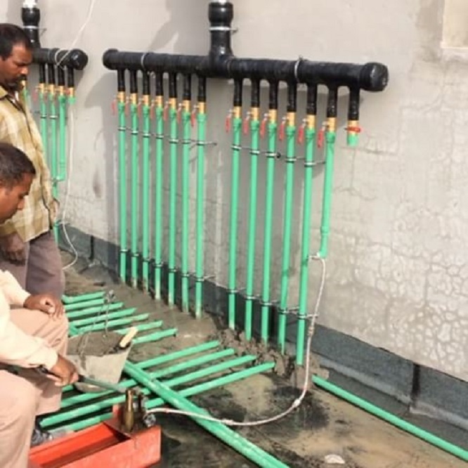 - عند الأنتهاء من أعمال التقطيع يبدأ السنكري بأعمال التمديد على أن لايشاركه أحدا من باقي أصحاب المهن وذلك تفاديا لوقوع أي أخطاء (يفضل أن يبدأ معلم الكهرباء بعده) علما أن القساطل سواء مياه الخدمة أو المياه المبتذلة يجب أن تكون ذات مواصفات جيده.