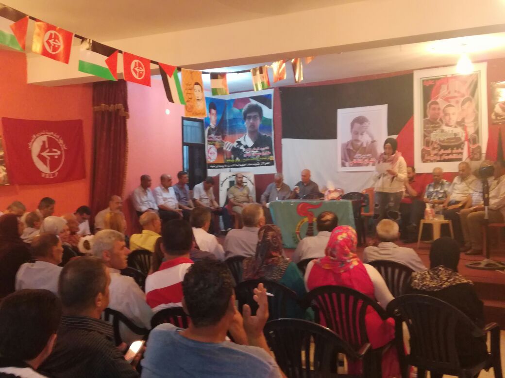 تحدث فيها عضو المجلس الوطني الفلسطيني المناضل صلاح صلاح، وذلك في قاعة مركز الشباب الفلسطيني في مخيم برج الشمالي، وبحضورقيادة الجبهة الشعبية لتحرير فلسطين في منطقة صور، ومسؤول لجنة العمل النقابي والجماهيري للجبهة في لبنان، وعدد من كوادر وأعضاء الجبهة، وحشد من ممثلي القوى والفصائل والأحزاب، والاتحادات واللجان الشعبية والمنظمات الشبابية، والجمعيات الأهلية، وفاعليات ثقافية وطنية لبنانية وفلسطينية.