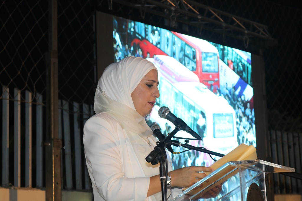 وألقت رئيسة الجمعية كلمة قالت فيها: أقف اليوم في هذا الصرح لأرحب بكم بإسم جمعية المواساة والخدمات الإجتماعية، هذه الجمعية وكما تشاهدون كبرت ونمت وتوسعت خدماتها وانتشرت مبانيها بفضلكم أنتم، أنتم أهل هذه المدينة الذين أوليتموها الثقة ودعمتم مشاريعها الخيرية فأصبحت على ما هي عليه الآن.