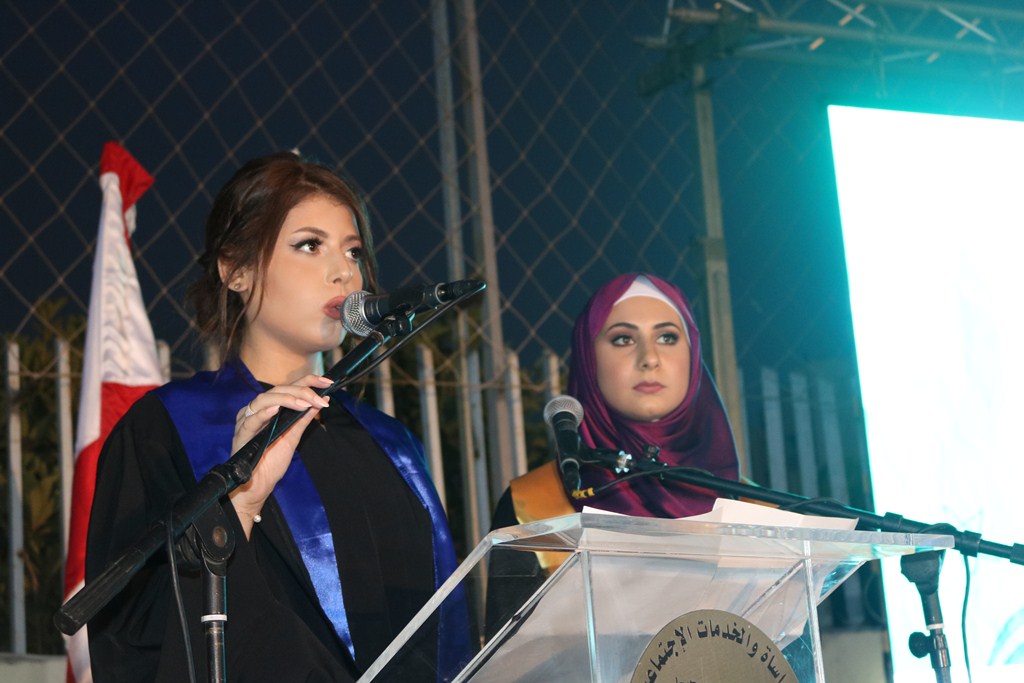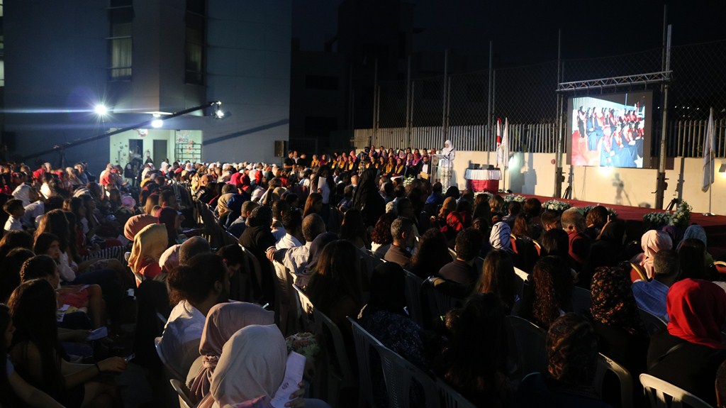 افتتح الحفل بالنشيد الوطني ونشيد الجمعية، وبعد دخول موكب الخريجين رحّب عريفا الحفل الأستاذ محمد ناصر الدين والأستاذة زينة الغزاوي بالحضور، ثم القى الطلاب ريم الغزال وميسم الجردلي ومحمد الرفاعي كلمة الخريجين.