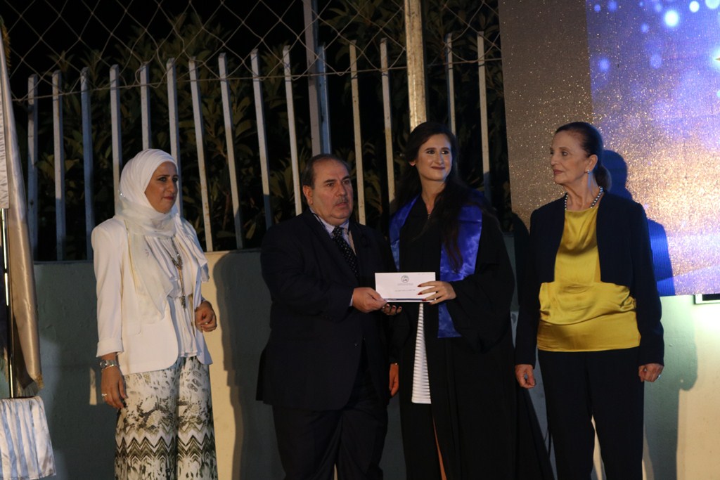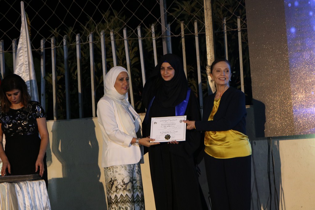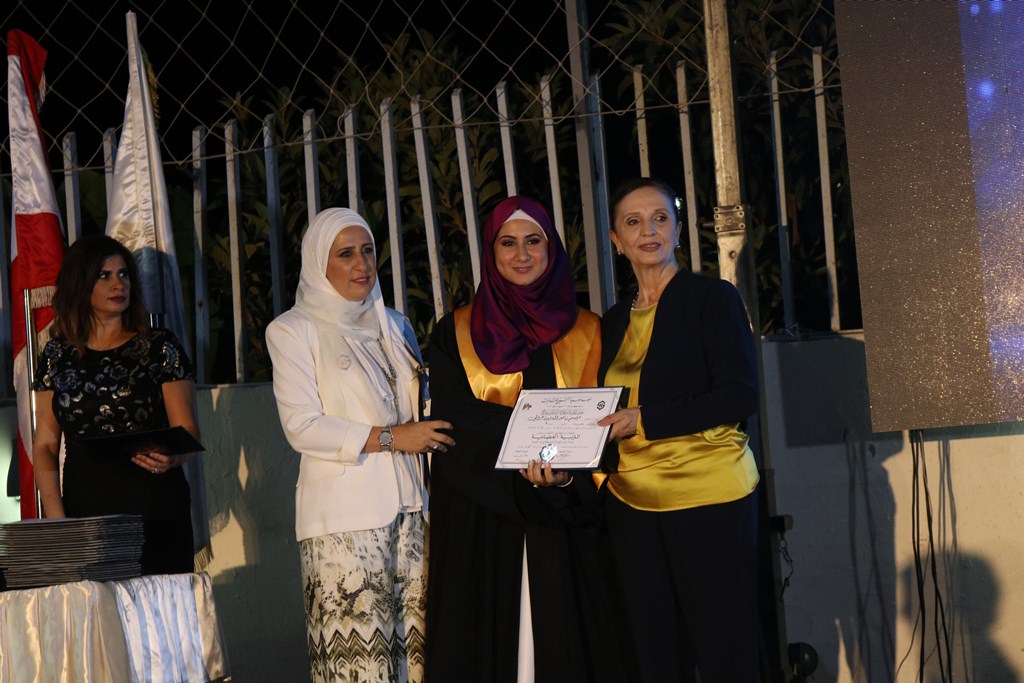وفي الختام قامت رئيسة الجمعية والمديرة بتقديم الشهادات على الخريجين والخريجات، كذلك تقديم المنح المقدمة من جامعة LIU ومن السيدة رولا الشماع الأنصاري.