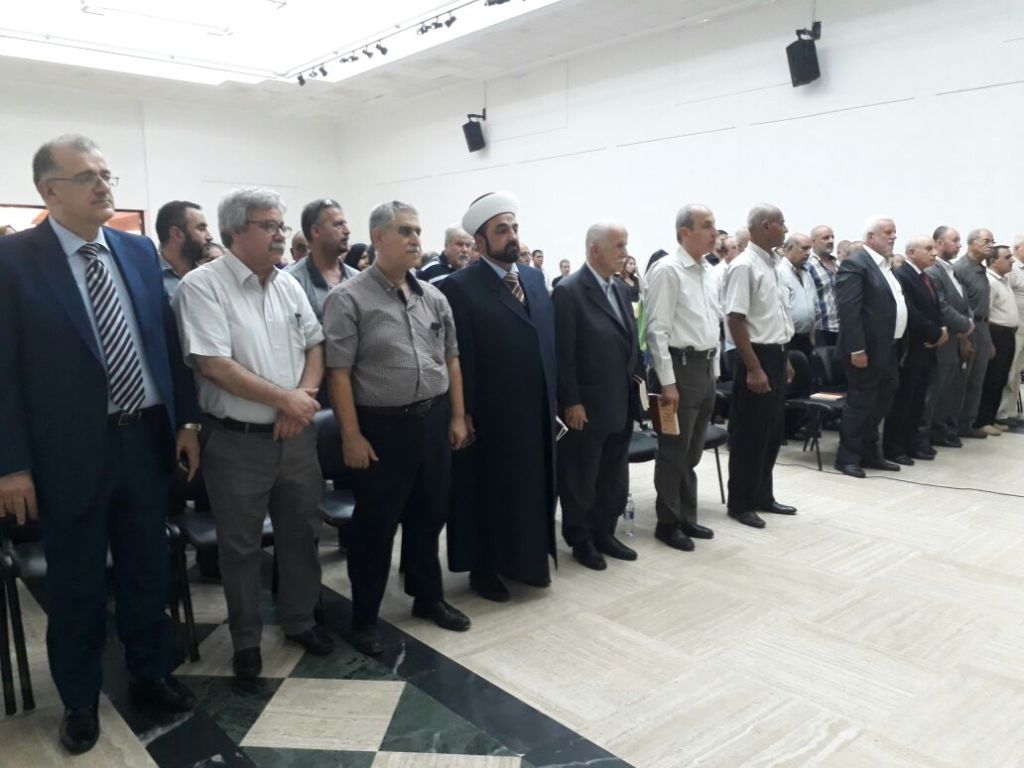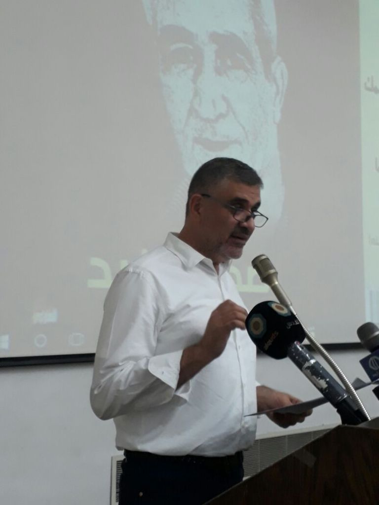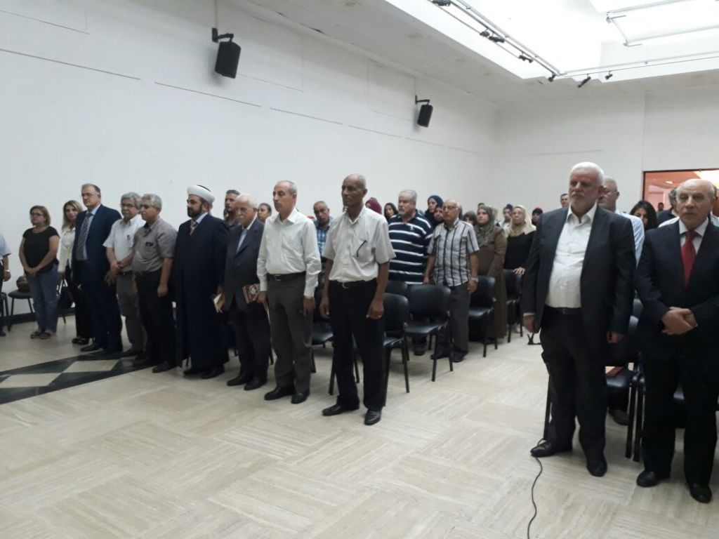 ثم كانت كلمة للدكتور حسن خليل، أشار فيها إلى أن صوت التاريخ لن يخفت، سيشق فضاء السموات السبع ليوصل صوتك المكبوت قسرًا. لن تنسى حجارة القدس عرق من بناها، ودماء من يسقطون اليوم دفاعًا عن الأقصى، هم جزء منها كما هي أيقونتهم. شجرة نخيل مريم ومخاضها وملاكها ومولودها ونجمتهم لن تُباع لقاء سفرة أو ليلة في حانة أو ربطة عنق. هي هي باقية وعلى وجعها وخوفها وقلقها. ستُعيد الصراخ لآلاف المرات، ستصرخ وسيصرخ أمل الولادة في وجه كل غاصب وغافل وذليل. سيعم مخاضها أرجاء الصحارى المترامية والمرمية في بحار الذل الأسود والعار الدائم. ستحمل نجمة الصبح بريق نورها، وتهيم على وجهها في البراري مفتشة عن شوكة يابسة في الفيافي المجهولة، ربما لم تصلها بعد لوثة المال والسلطة، لترمي عليها وزر من ابتُلينا بهم لعلها تخفيهم، مرّة واحدة وإلى الأبد.