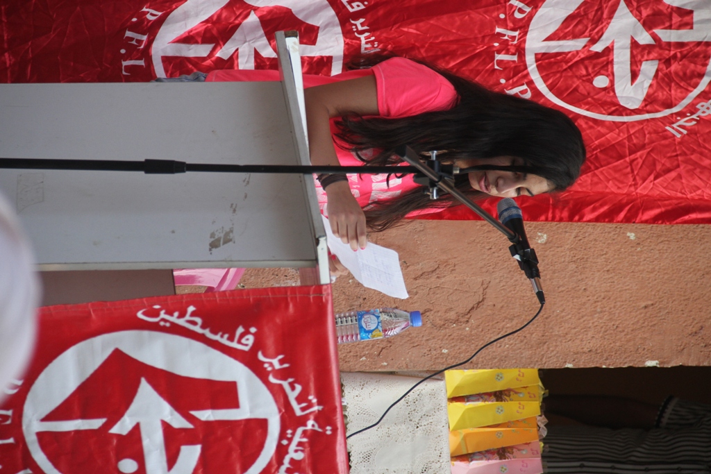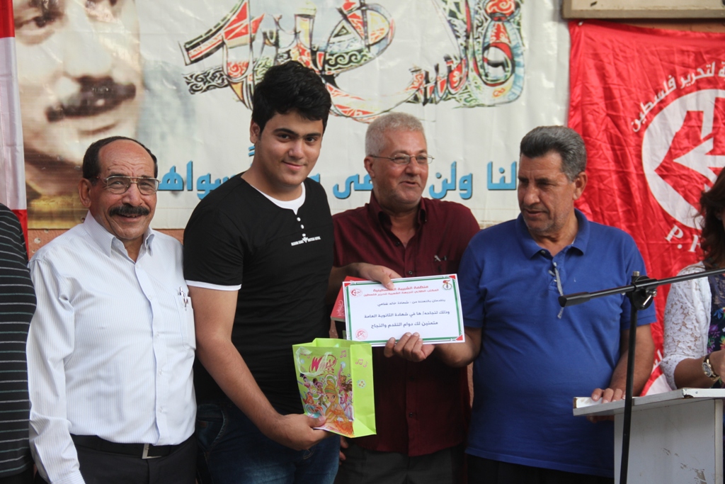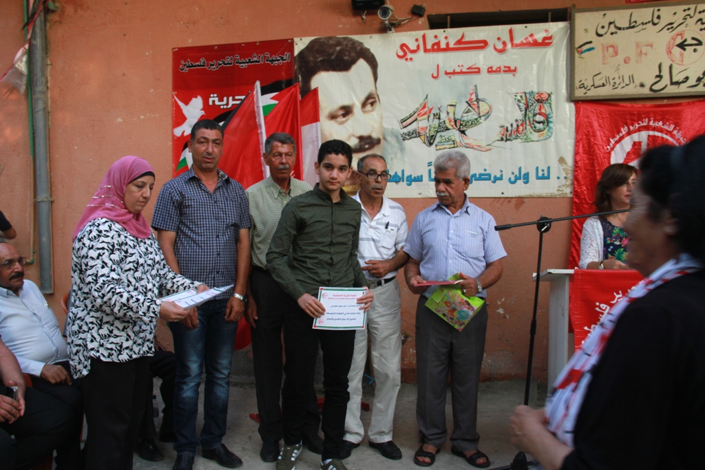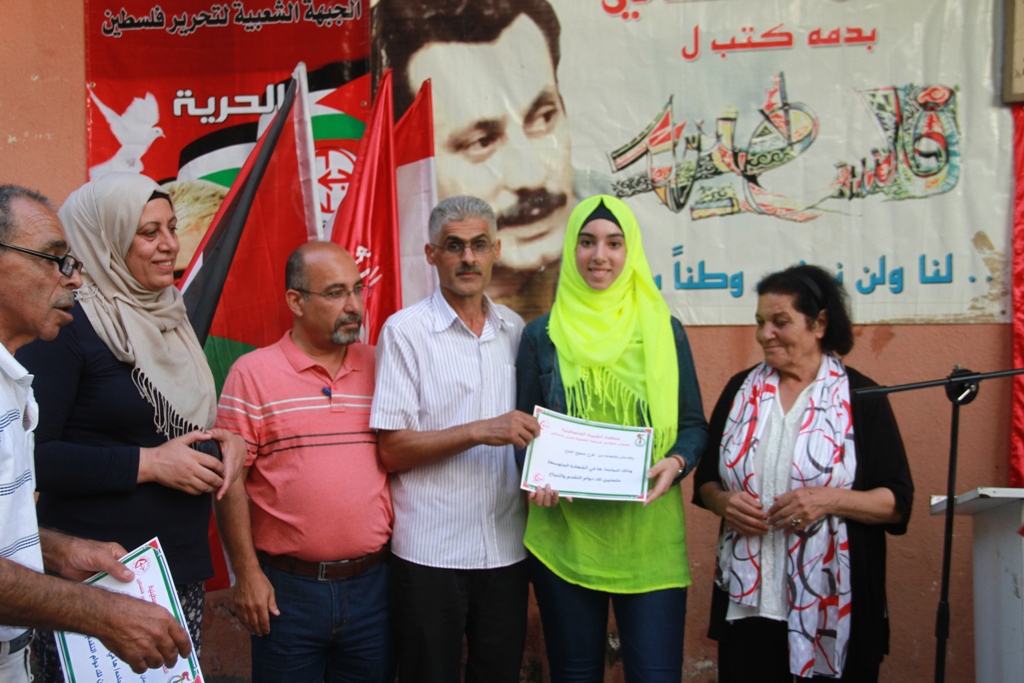 علهم يحققون ما عجز عنه غيرهم، وعلهم يعطون للشهداء حقهم، علهم يفتخرون بأبنائهم و أحفادهم، وعسى فلسطين تفرح يوما بما أنجبت من أبناء ناجحين مثابرين، وفي نهاية كلامها وجهت التحية للجبهة الشعبية لتحرير فلسطين، لرعايتها الدائمة لأبنائها و أبناء الشعب الفلسطيني، وعاهدتها أن يبقوا طالبي علم مثابرين على النجاح حتى تحقيق حلمنا بالحرية و العودة، وختمت بتوجيه التحية للأسرى والوفاء للشهداء ولفلسطين .
