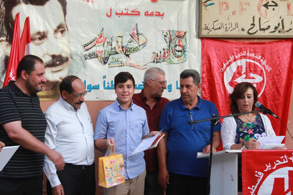كرمت الجبهة الشعبية لتحرير فلسطين، ومنظمة الشبيبة الفلسطينية في منطقة صيدا عددًا من طلابها الناجحين بالشهادتين المتوسطة والثانوية، وذلك بحضور عضو اللجنة المركزية العامة هيثم عبده، ومسؤول العمل النقابي والجماهيري في لبنان أبو وسيم، ومسؤول العلاقات السياسية في منطقة صيدا أبو علي حمدان، و أعضاء قيادة المنطقة، وأهالي المكرمين، وعدد من الرفاق والرفيقات.
