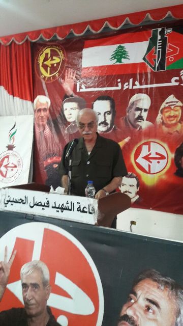 بعد سرد تاريخ الشهيد الأمين العام للجبهةالشعبية لتحرير فلسطين، دعا لوباني إلى موقف شجاع وموحد في وجه أصحاب الأجندات التي تسيء للشعب الفلسطيني وقضيته، معتبرًا أن ما يجري في مخيم عين الحلوة حلقة في مخطط تصفية قضية اللاجئين وحق العودة، وقد شدد على ضرورة التصدي الموحد لكل العابثين بأمن المخيم وكل المخيمات، معتبرًا أن التستر بعباءة التدين يخفي خلفه مؤامرة ينفذها بعض الموتورين ممن باعوا ضمائرهم وبعض المضللين والمخدوعين، كمادعا الحكومة اللبنانية وكافة المرجعيات السياسية والروحية للعمل على رفع الظلم الواقع على فلسطينيي لبنان الذين يعانون مرارة اللجوء وشظف العيش، جراء الظروف الاجتماعية والاقتصادية والقوانين الجائرة التي تحرمهم من أبسط حقوقهم الإنسانية، محذرًا من الحملات المشبوهة التي تنادي وتدعو للهجرة الجماعية، باعتبارها تصب في خدمة المشروع الصهيوني، مشددًا ضرورة تحل القيادة الفلسطينية مسؤولياتها كاملة بما من شأنه التخفيف من معاناة الشعب الفلسطيني، وتعزيز مقومات صموده في مواجهة المخططات الصهيونية وإفشالها.