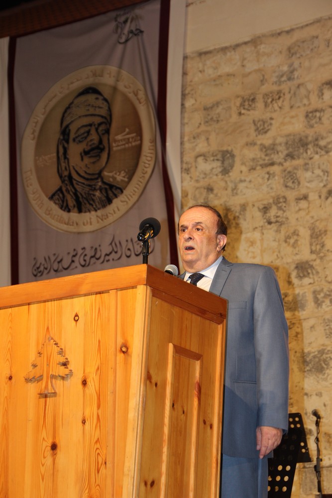 وتابع: للأسف لبنان الرسمي لم يكرم قبل الآن نصري شمس الدين مثلما كَرَّم كباراً آخرين مستحقين مثل وديع٬ صباح وفيروز. اليوم تستذكره قريتُه ومجلس بلديتها وجمعيات وأصدقاء له٬ أهلُه ومحبو فنه. وتستذكره منطقتُه، إقليم الخروب الذي يفتخر بفنان كبير مثِله٬ صَدَح صوتُه في فضاء الأغنية اللبنانية. اليوم تكرّمه وزارة الثقافة بشخص الوزير الصديق غطاس خوري برعايته لهذا المهرجان٬ فشكراً لك معالي الوزير