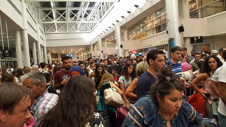 زحمة مغادرين داخل مطار رفيق الحريري الدولي، آلاف الزوار في وقت واحد، أكثر من 900 ألف مغادر وآتٍ في الشهر الأخير، أرقام قياسية لحركة المطار تسببت بطوفان بشري في قاعاته التي ثبُتَ انها لا تتسِع لضغط بشري كالذي شهدناه اليوم، ما يحتّم البحث في سبل تنظيمية تمنع الجحيم الذي عاشه مسافرون اليوم وتحميهم من الوقوع ضحية المبتزين.