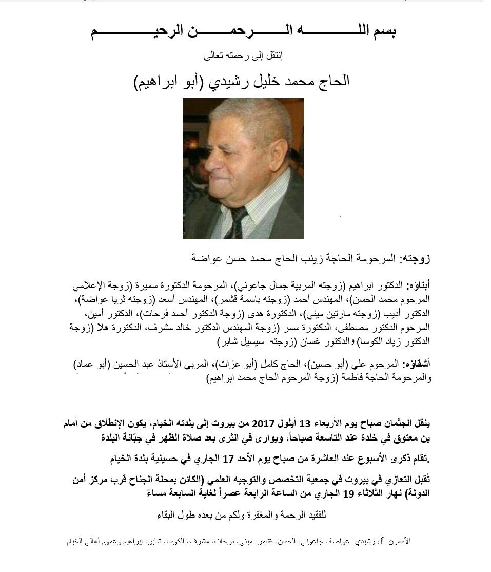 أنعى إليكم رحيل والدي الحاج أبو ابراهيم محمد رشيدي