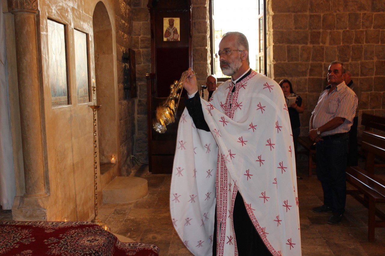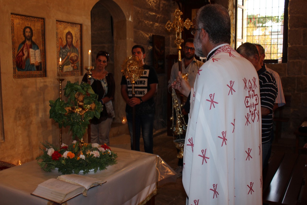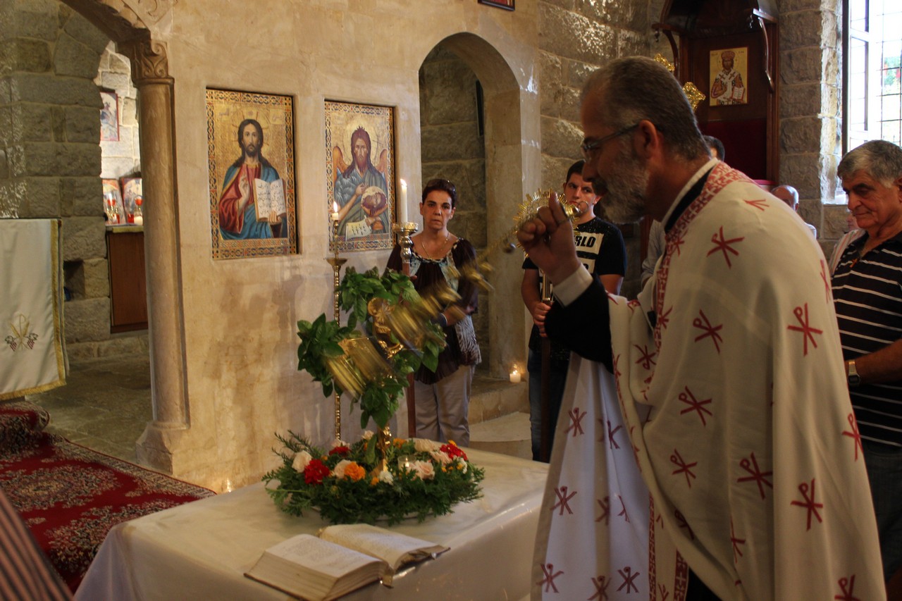 وفي ختام القداس بارك الاب فخري مراد الماء والزهور كتقليد في عيد ارتفاع الصليب للتبارك منها.