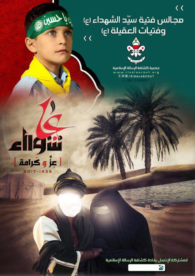 تدعوكم كشافة الرسالة اﻷسلامية #فوجالثقلينالخيام للمشاركة في مجالس فتية سيد الشهداء (ع) وفتيات العقيلة (ع) التي ستقام إبتداء من يوم الجمعة الواقع بتاريخ 22_9_2017 وطيلة أيام عاشوراء الساعة الخامسة عصرا