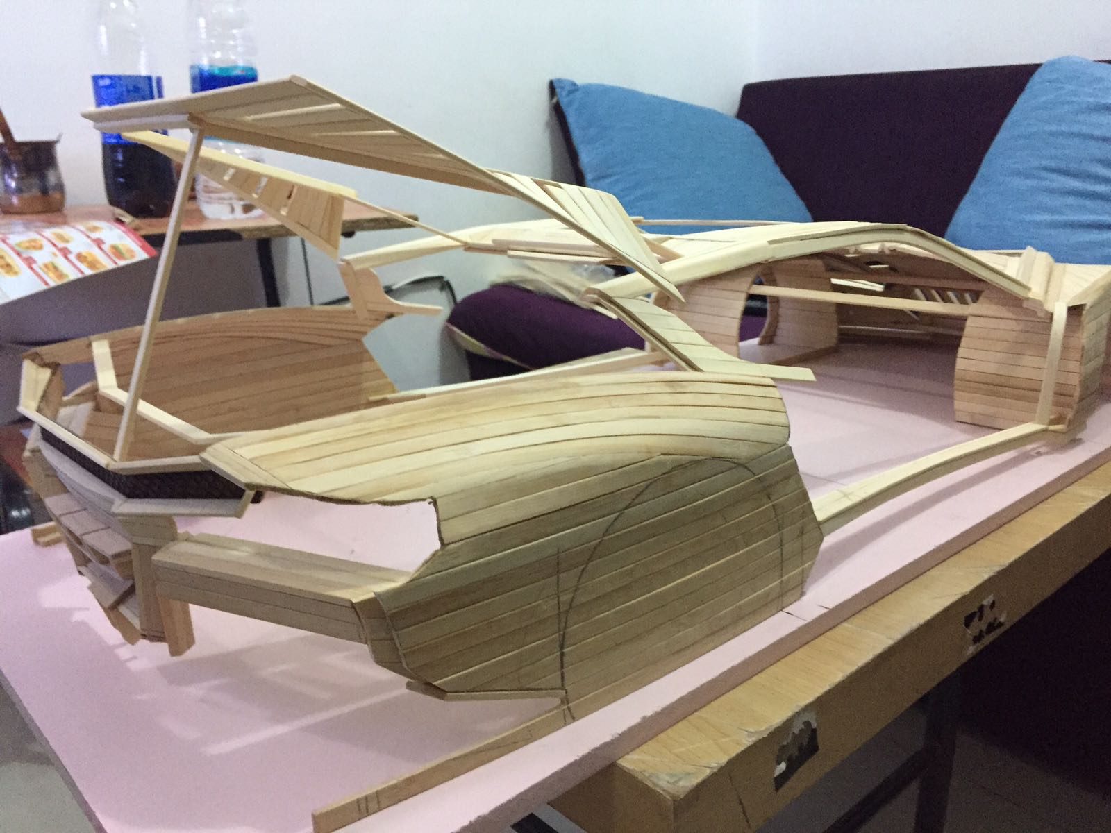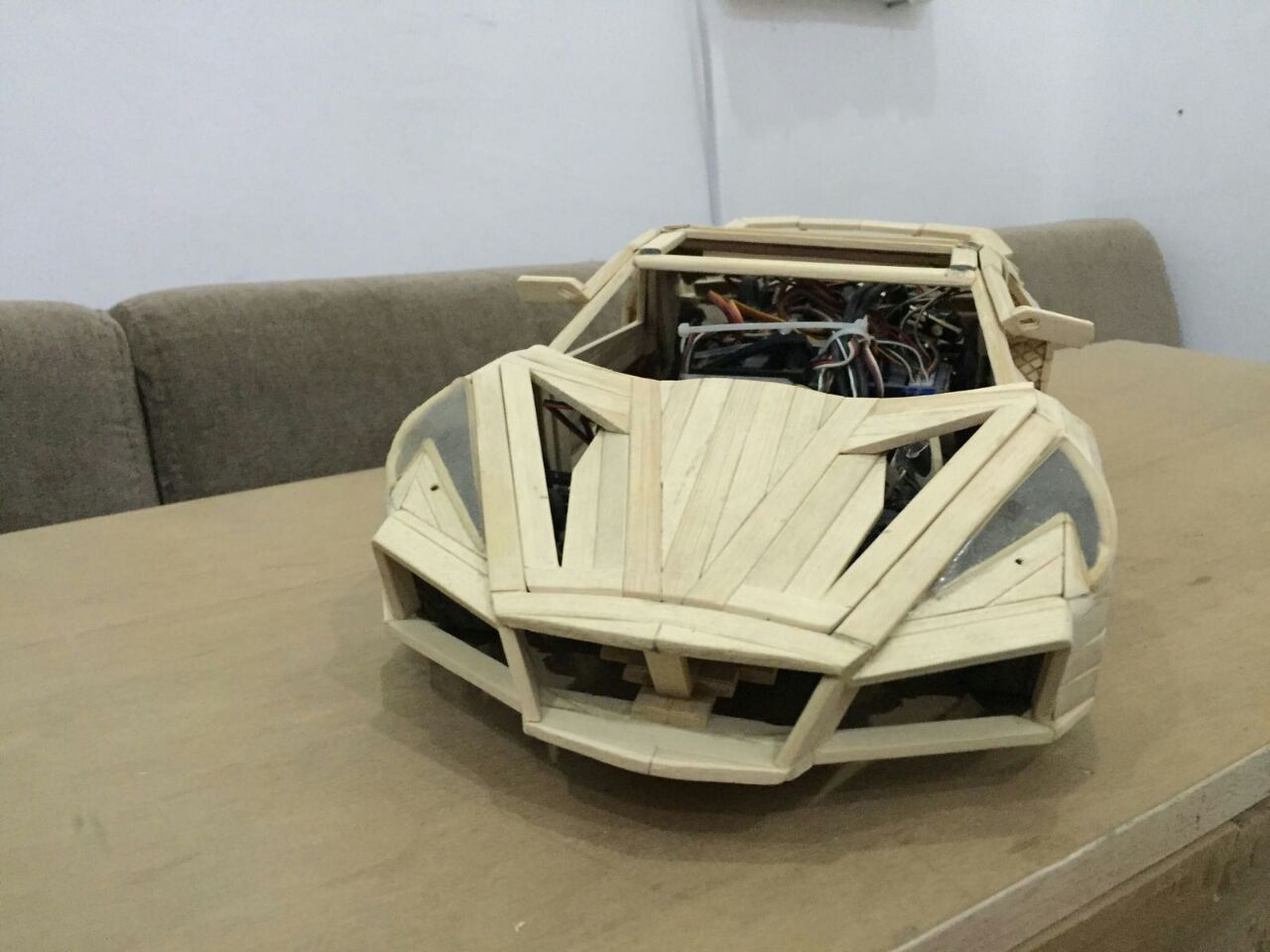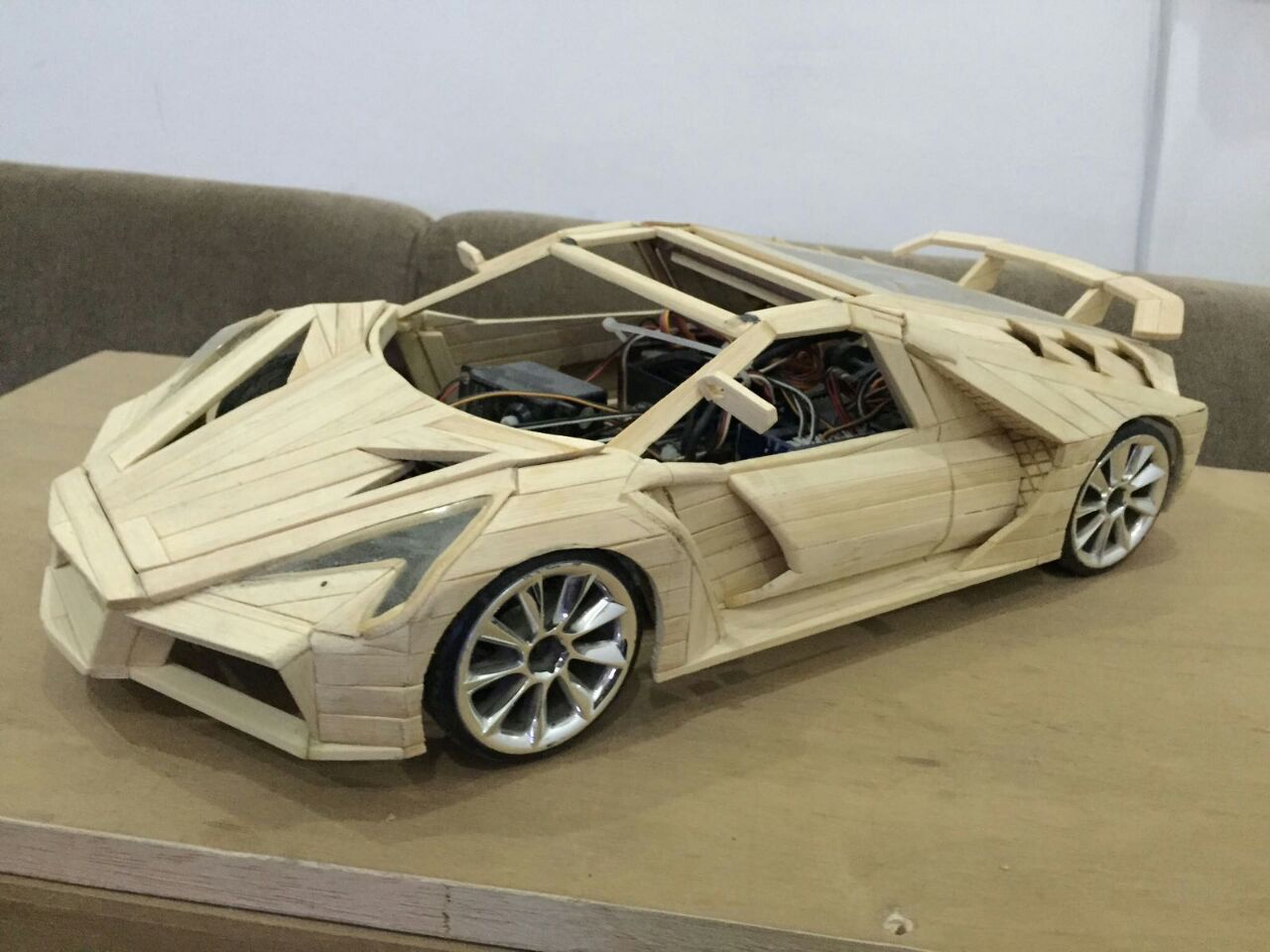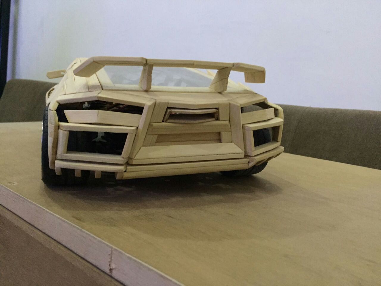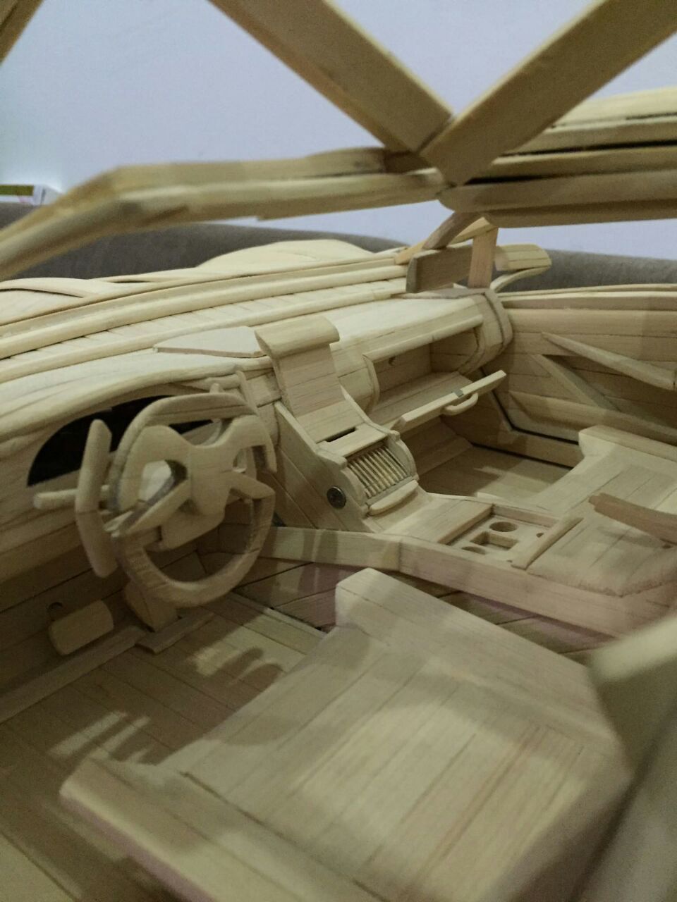 لكنه أصر على صقل موهبته أكثر فأعتمد عام 2009 اعواد القش وصنع حتى الان 6 سيارات بقياسات مختلفة وبتصاميم مميزة من خياله ، دون غفلان أقل التفاصيل وأدقها حتى تخالها حقيقية وكل سيارة تستلزم من شهرين حتى عام كامل من العمل بأوقات الفراغ لتخرج تحفة فنية تستحق التقدير .