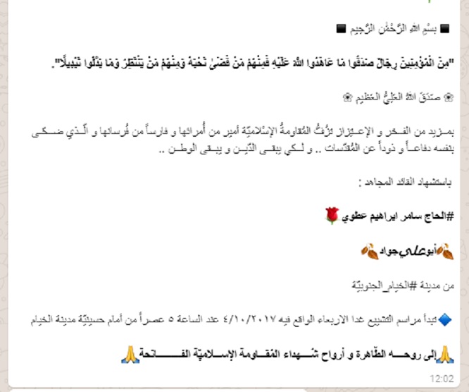 جواد نصرالله: أبو علي سامر عطوي.. غادر مجاهدآ وعاد شهيدآ