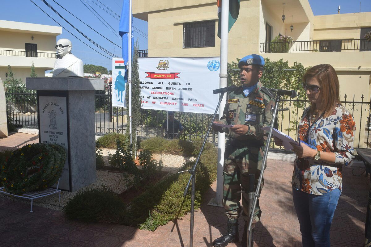 وقد رددت الشخصيات الرسمية التي تواجدت في المناسبة أقوال وأعمال المهاتما غاندي، وشددت على أهميتها في عالمنا اليوم بحيث ينجرف العالم نحو العنف والتعصب. وشكروا الكتيبة الهندية على كل ما قدمته من مساعدة للسكان المحليين في المنطقة ولإقامة علاقة من الصداقة والثقة المتبادلة.
