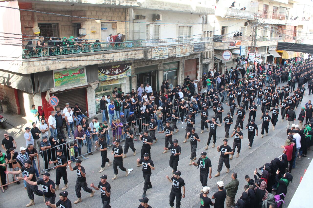المسيرة انطلقت من محيط المدرسة اﻻنجيلية عند المدخل الشرقي لمدينة النبطية يتقدمها حملة الرايات والاعلام اللبنانية والحركية وصور للامام موسى الصدر والرئيس نبيه بري وصور لقادة وشهداء حركة أمـل، اضافة الى مجسمات تجسد واقعة كربلاء، ثم فرق رمزية من كشاقة الرسالة الاسلامية والدفاع المدني فيها، ومكتب شؤون المرآة وفد من امهات الشهداء اللواتي حملن صور ابنائهن ، ثم فرق "اللطيمة" التي شارك فيها الالاف شباب افواج المقاومة اللبنانية أمل ، الذين أنتظموا بلباسهم اﻻسود في صفوف طويلة ، مرددين لطميات عاشورائية وشعارات الحسينية .