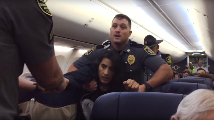 شريط الفيديو، الذي التقطه أحد الركاب، أظهر رجال الشرطة، وهم يسحبون ويجرون السيدة داخل الطائرة لإنزالها منها، وتبين فيما بعد أنها حامل.