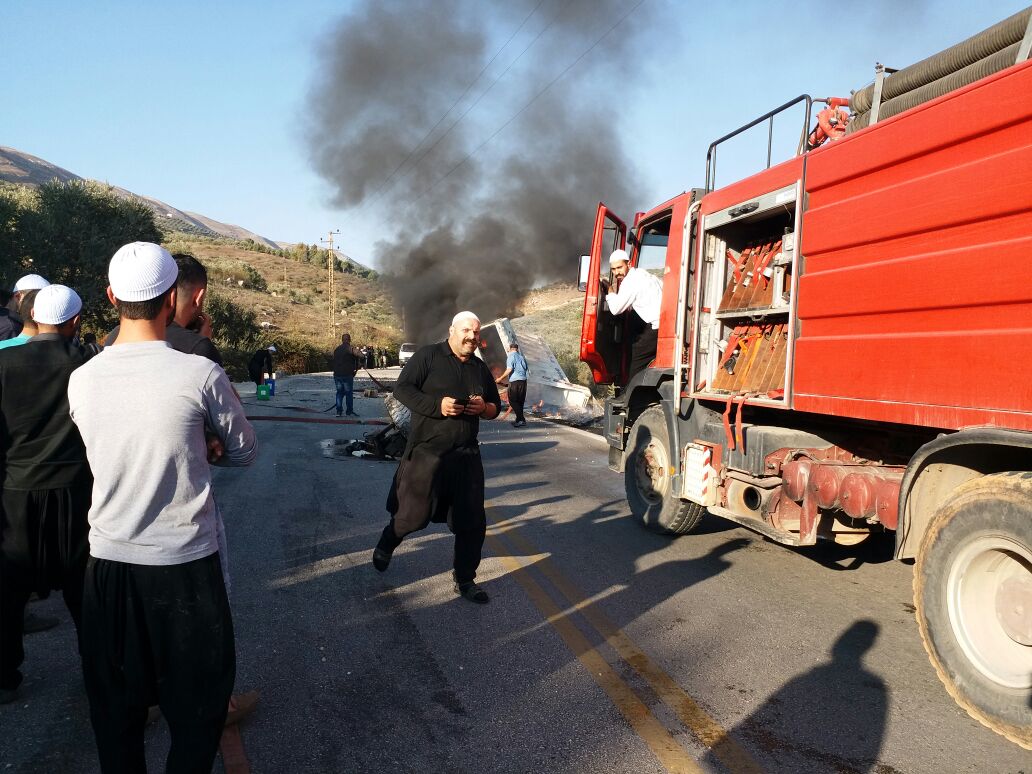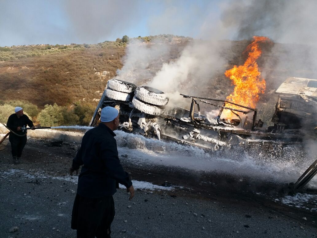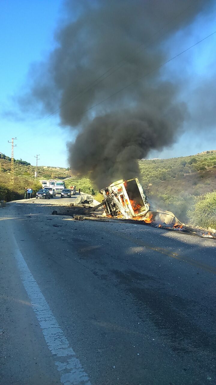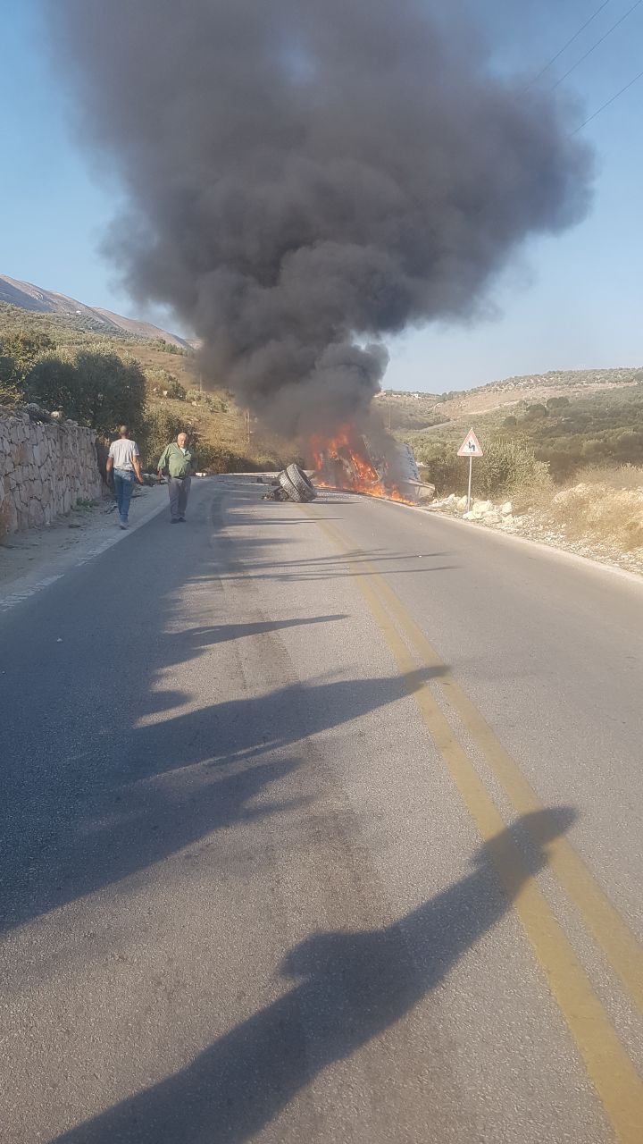 انقلبت شاحنة في محلة عين تنورة - الحاصباني، يقودها المواطن أ.عواضة من بلدة الخيام، بعد ان انحرفت عن الطريق مما أدى الى اشتعال النيران فيها.