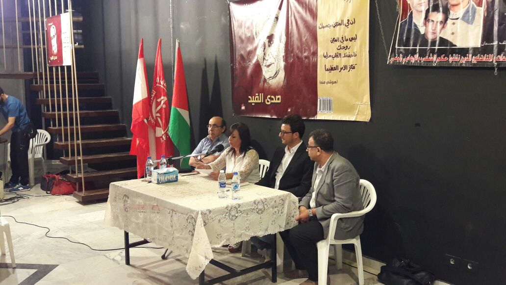 من هنا أريد أن أحيي كل الذين انتصروا لفكرة فلسطين كعنوان للثوريين، ووقفوا صفاً واحدًا من شباب فلسطين وشباب العرب، ومنهم الرفيقة الشابة الاتحادية لينا بعلبكي التي جسدت هذا التلاحم اللبناني الفلسطيني الأصيل، بنزعها العلم الصهيوني، الذين انتصبوا كالرماح كي ترتفع راية فلسطين، وحولوا جلسات المؤتمرات يوم فلسطين، قرارهم الشبابي الصائب والجماعي: "هذا مكاننا لا أحد ينافسنا فيه أو يدفعنا خارجًا"،