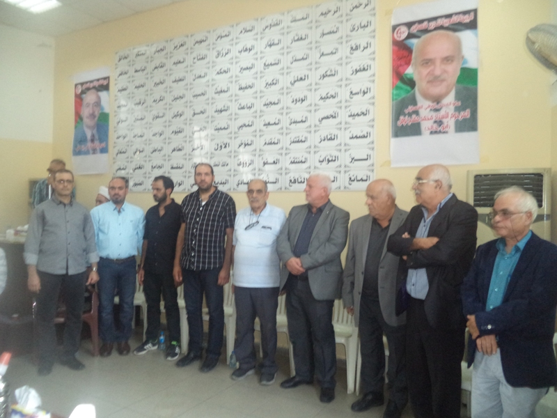 وتابع: من قاتل من أجل الأقصى والقدس هم شباب فلسطين في مناطق ال 48 الذين هم عرب العرب، وليس عندنا تفرقة مذهبية أوطائفية، حيث رفع الأذان من الكنائس. وتابع: يجب أن تقوم القيادة الفلسطينية بإعادة النظر بكل رؤيتها وتقوم بمراجعة سياسية، وتصيغ استراتيجية مقاومة من أجل العودة الى فلسطين. أخيرا عاهد الفقيدين و كل الشهداء والأسرى وأمهاتهم، وباستمرار المسيرة حتى نيل العودة ورفض التوطين، ونحن لم نضيع البوصلة أبدا حيث نرسم طريقنا بالدم ونرسم فلسطين بالدم.