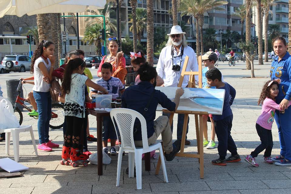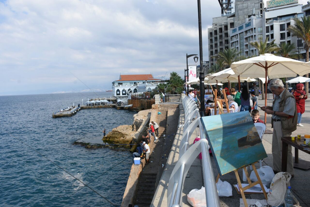 نظّم ملتقى الألوان الفني يوم أمس الأحد نشاطا فنيا بعنوان «بحر وناس» على كورنيش عين المريسة بيروت، وبدأ الفنانون عند العاشرة صباحا بالرسم المباشر حيث توزعوا على خيم جهزت خصيصا للنشاط ،وبالإضافة للفنانين شارك الأطفال بحلقات رسم وتلوين على القماش والبحص .