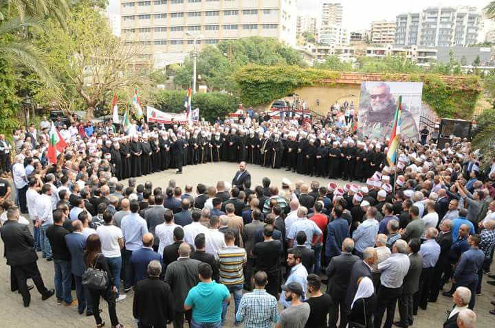 حشود غفيرة وفعاليات سياسية وامنية لبت دعوة رئيس الحزب الديمقراطي اللبناني وزير المهجرين الأمير طلال أرسلان، بدارته في خلدة، الى حفل تأبين وتقبل تعازٍ بالمرحوم الشهيد اللواء عصام زهر الدين، قائد قوات الحرس الجمهوري السوري في دير الزور، حضره إلى جانب أرسلان، شيخ عقل طائفة الموحدين الدروز الشيخ نصرالدين الغريب، ممثل عن المرجع الروحي للطائفة الشيخ أبو سليمان حسيب الصايغ، راعي أبرشية بيروت المارونية المطران بولس مطر، حشد كبير من أعيان ومشايخ الطائفة الدرزية، السفير السوري في لبنان علي عبد الكريم علي، السفير الروسي ألكسندر زاسيبكين، السفير الإيراني محمد فتحعلي، السفير التونسي محمد كريم بودالي، ممثل أمين عام حزب الله السيد حسن نصرالله، الحاج حسين الخليل يرافقه وفد كبير من الحزب ضمّ مسؤول وحدة الأمن والإرتباط الحاج وفيق صفا ومسؤول منطقة الجبل الحاج بلال داغر، النائب عاصم قانصوه، نائب رئيس المجلس النيابي السابق إيلي الفرزلي، المقدّم نجم الأحمدية ممثلاً مدير عام الأمن العام اللواء عباس ابراهيم، محافظ لبنان الجنوبي وجبل لبنان منصور ضو، رئيس المجلس الأعلى السابق للحزب السوري القومي الإجتماعي الوزير السابق محمود عبد الخالق على رأس وفد، الوزير السابق ناجي البستاني، النائب السابق إميل إميل لحود، النائب السابق ناصر قنديل، وفد من قيادة حركة أمل يتقدمه مسؤول الإعلام المركزي في الحركة د. طلال حاطوم ضمّ عضو المكتب السياسي مفيد الخليل وأعضاء قيادة إقليم جبل لبنان، قائمقام عاليه بدر زيدان العريضي، ممثل عن حزب التيار الوطني الحر، ممثل عن السفير الفلسطيني في لبنان أشرف دبور، رئيس المحاكم المذهبية في طائفة الموحدين الدروز القاضي الشيخ فيصل ناصر الدين، قاضي المذهب الدرزي الشيخ نزيه أبو ابراهيم، رئيس الإتحاد العالمي لعلماء المقاومة الشيخ ماهر حمّود، أمين عام رابطة الشغيلة زاهر الخطيب، اللواء علي الحاج، وفد من لقاء الأحزاب والقوى والشخصيات الوطنية يتقدمه منسق اللقاء محمد خواجا، أمين سر حركة فتح ومنظمة التحرير الفلسطينية العميد سمير أبو عفش، عضو المكتب السياسي مسؤول جبهة النضال الشعبي الفلسطيني في لبنان تامر عزيز، رئيس حزب الوجود ريدان حرب مع وفد من الحزب، رئيس التيار العربي شاكر البرجاوي، رئيس حزب الوفاء اللبناني أحمد علوان، قيادة المجلس السياسي والهيئة التنفيذية ورؤساء الدوائر والوحدات الحزبية في الديمقراطي اللبناني، وفد من سرايا المقاومة، عضو المجلس الوطني للإعلام غالب قنديل، الإعلامي جوزيف أبو فاضل، كاهن رعية الشويفات المارونية الأب شربل ديب، كاهن رعية الشويفات للروم الأرثوذكس الأب الياس كرم متقدماً وفداً من الرعية، بالإضافة إلى عدد من رؤساء البلديات وأعضائها والمخاتير والفعاليات والأمنيين والقضاة وحشود شعبية من حاصبيا وراشيا والشوف وعاليه والمتن ومن مختلف المناطق اللبنانية، ومن الحزبيين والمناصرين.